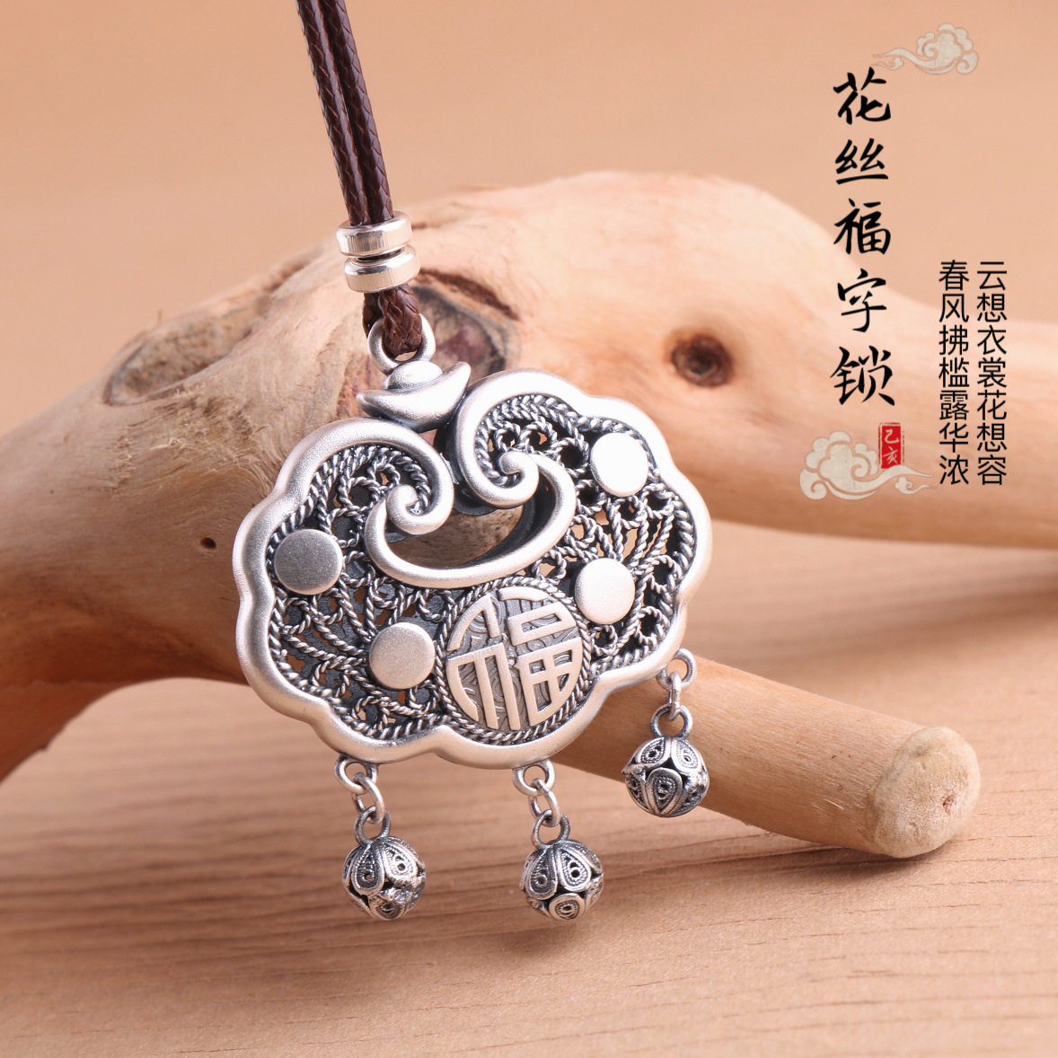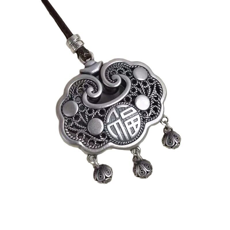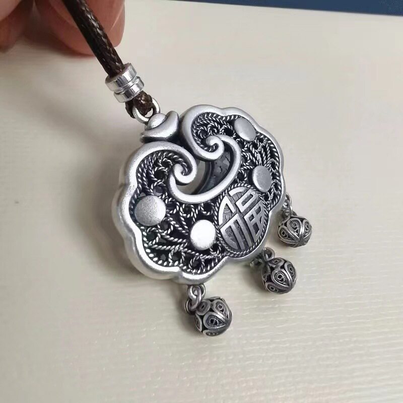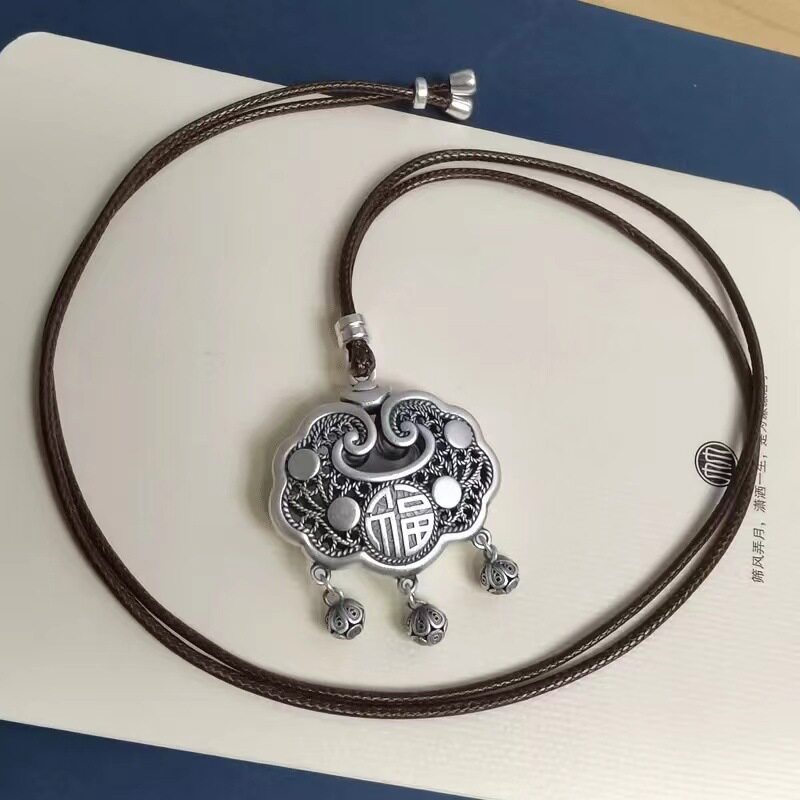 长命锁宝宝镂空腊绳项链吊坠大人女款成人毛衣链银锁吊坠