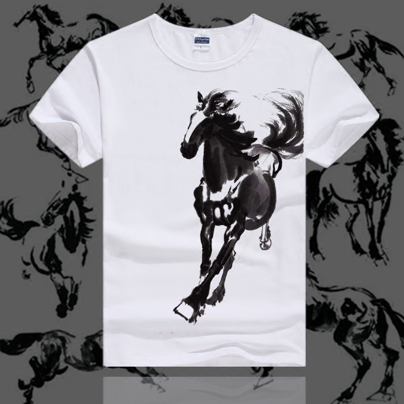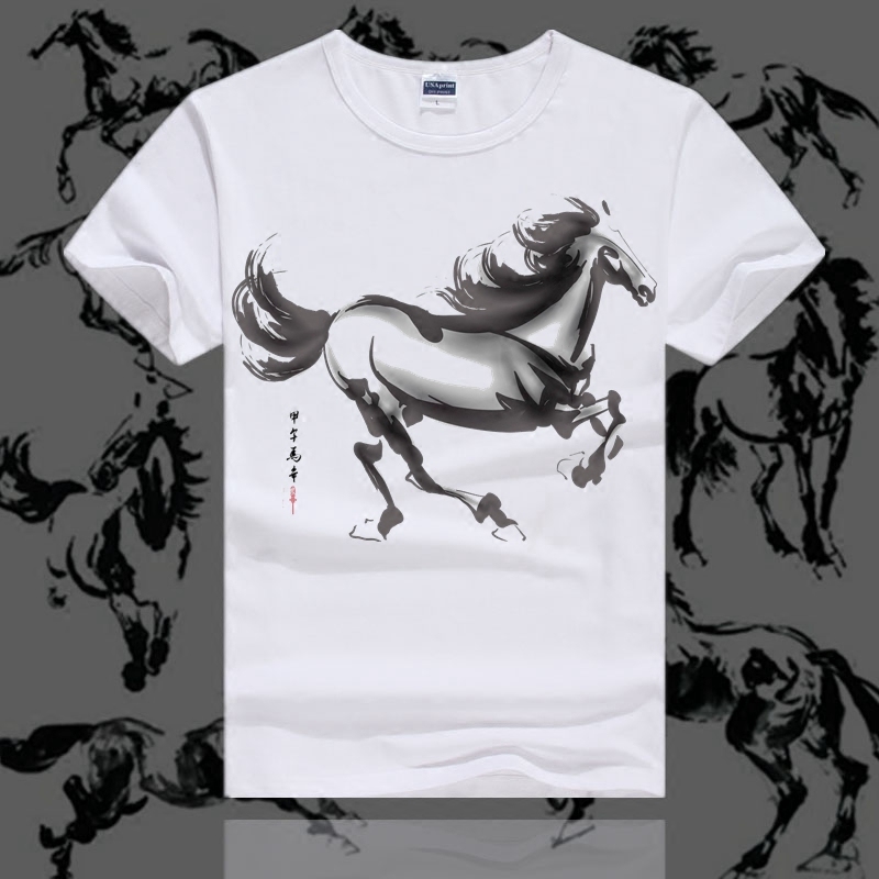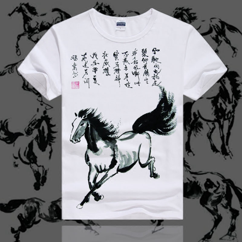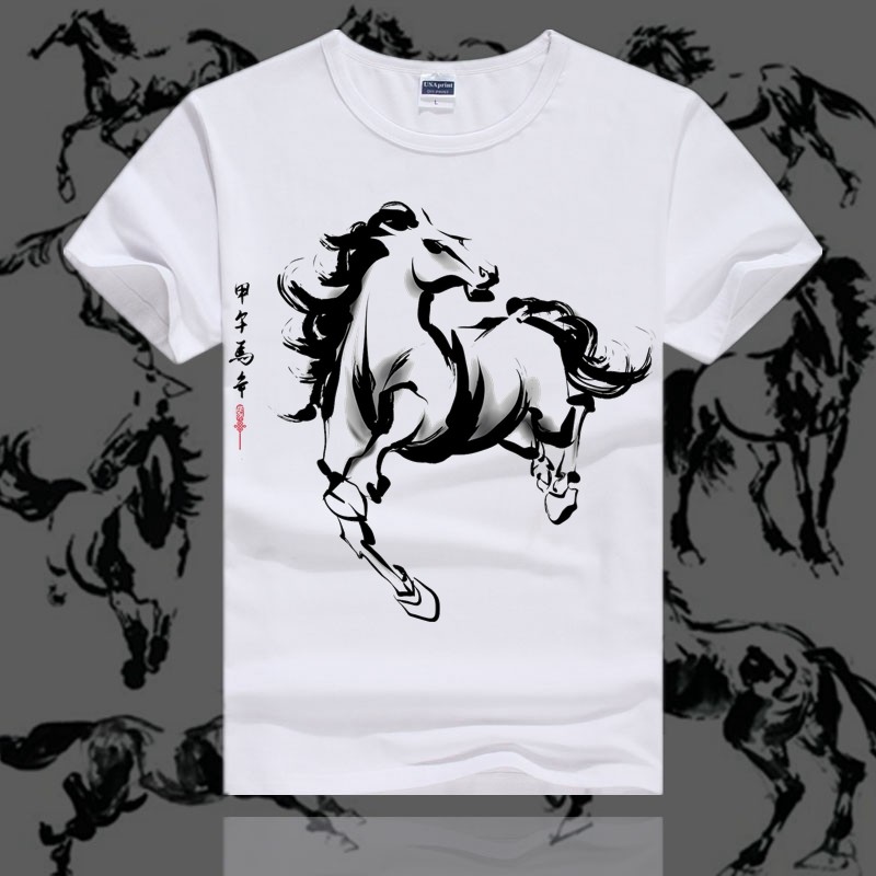 t恤男女短袖圆领半袖夏情侣装宽松马水墨印花文字体恤中国风男装