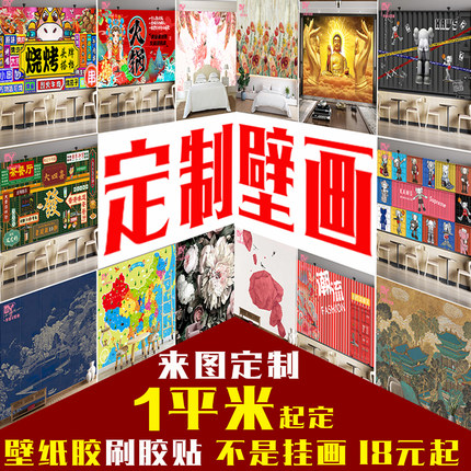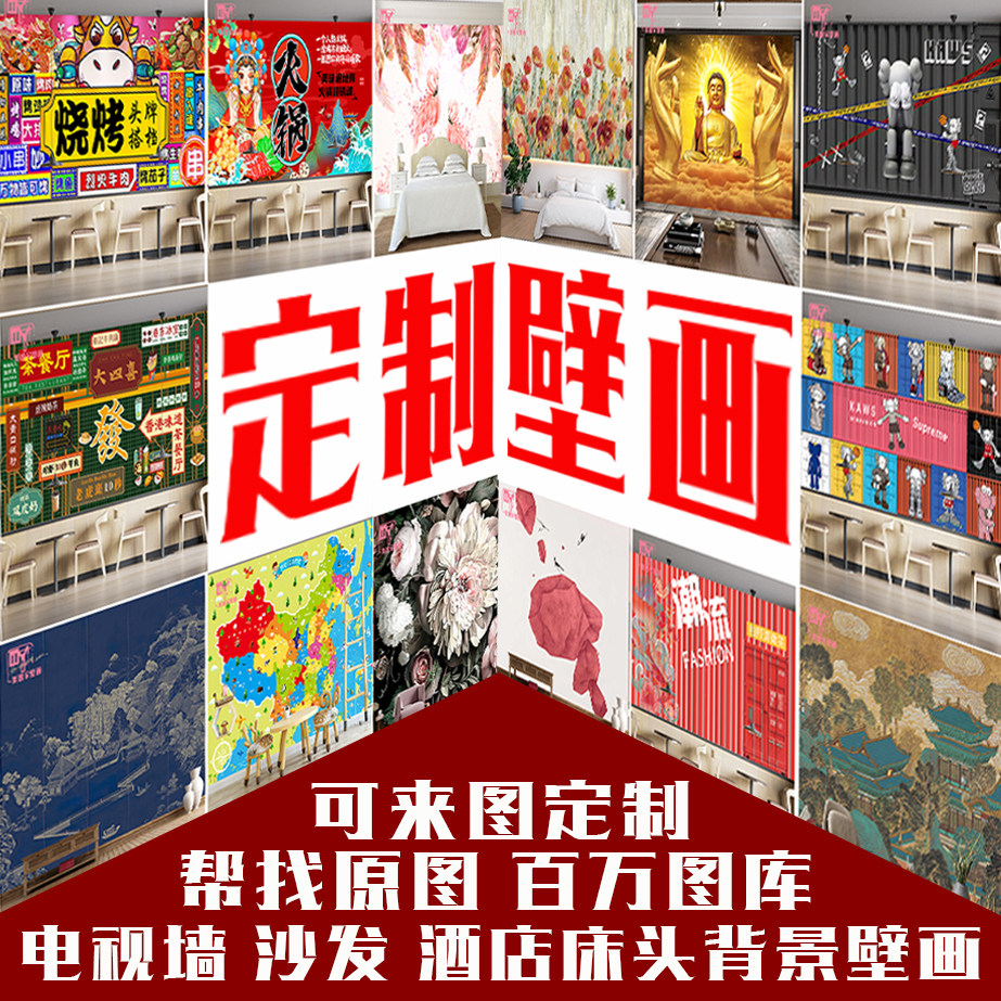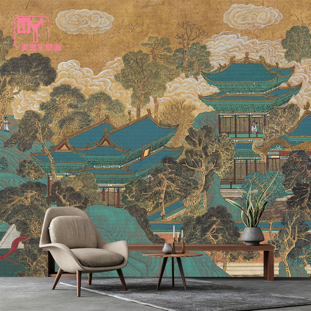 无缝壁画|防水可擦拭超大尺寸酒店民宿棋牌新中式床头画墙画壁布