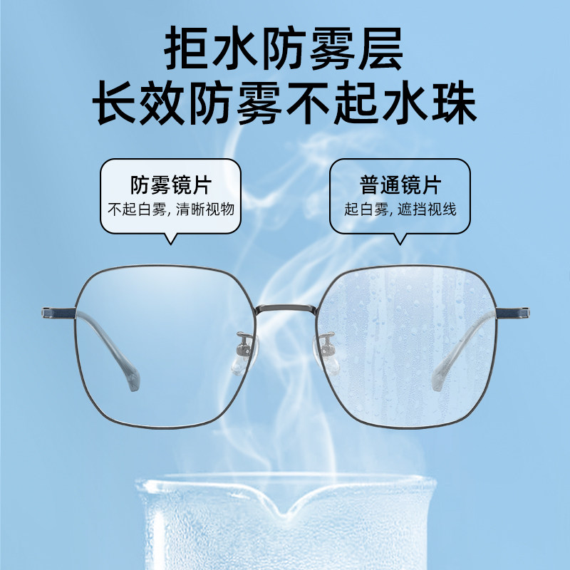 防雾防蓝光抗辐射近视眼镜男款可配度数大框显脸小冬天冬季不起雾