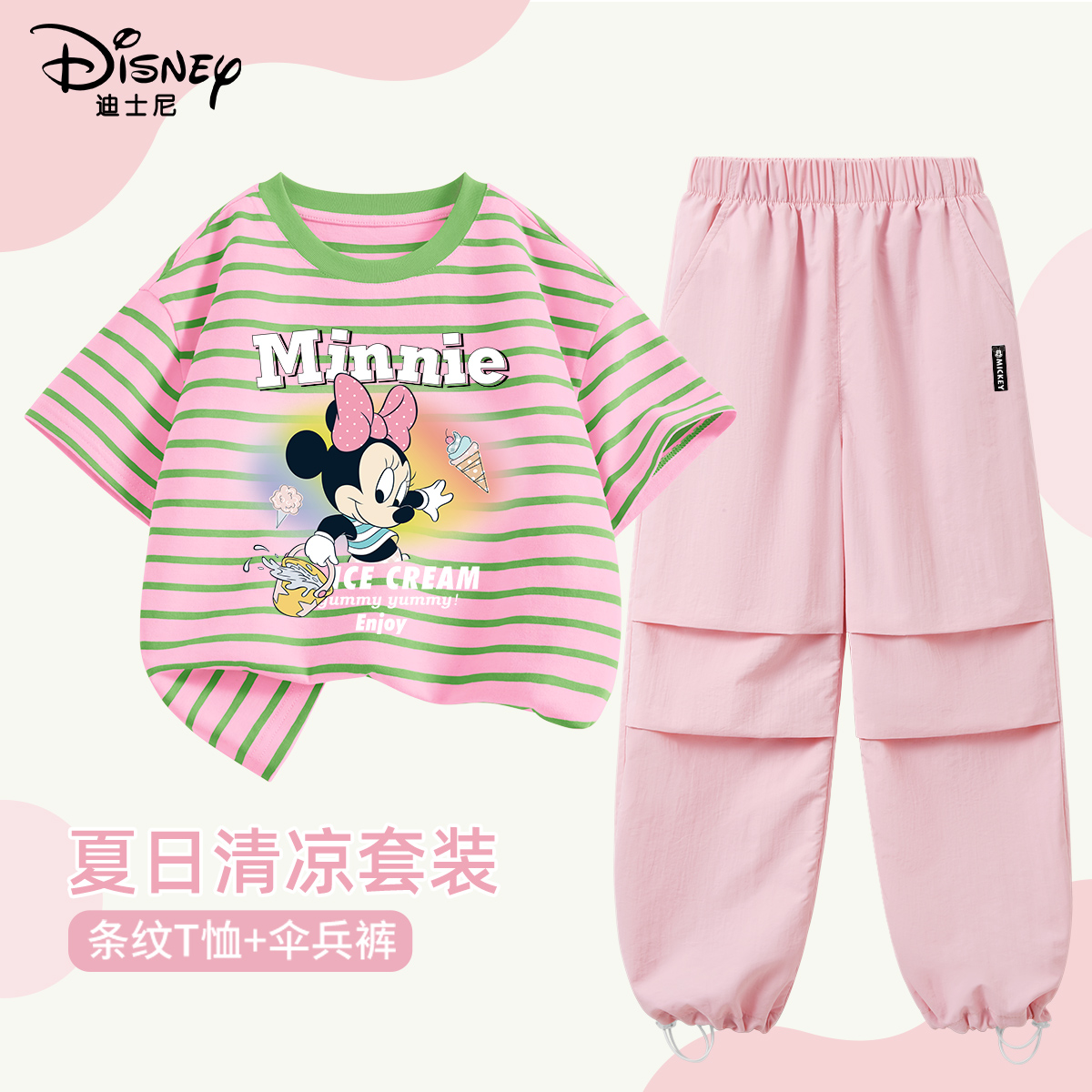迪士尼女童夏套装2025新款洋气时髦夏季童装女孩衣服儿童夏装运动