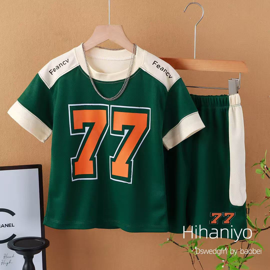 儿童短袖套装跑步运动服速干男女童夏装薄款套头衫短裤童装