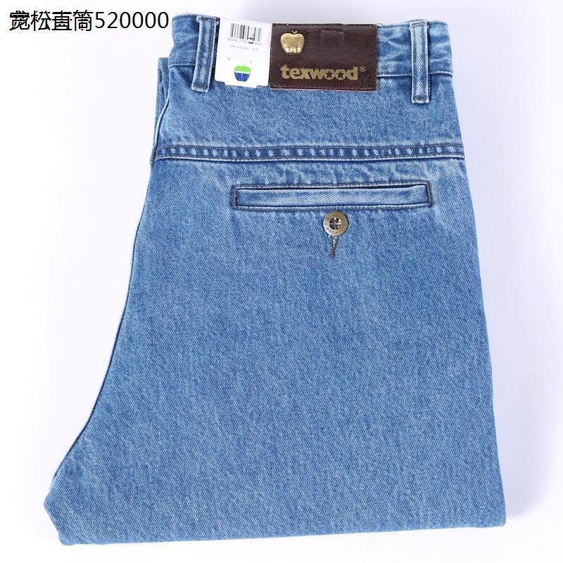 苹果牛仔裤男装休闲裤秋冬季厚款直筒宽松高腰全棉中年商务男裤子