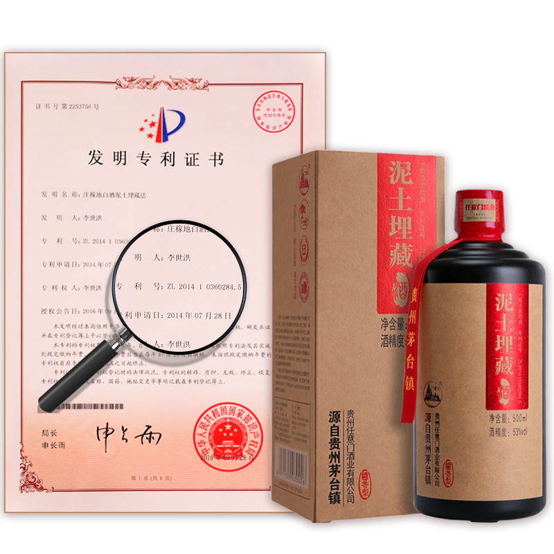 贵州任意门酒业 专利泥土埋藏53度粮食酱香型高度坤沙窖藏酒单瓶