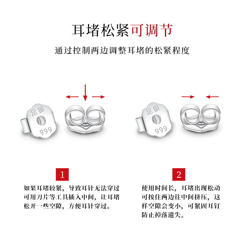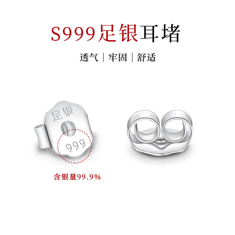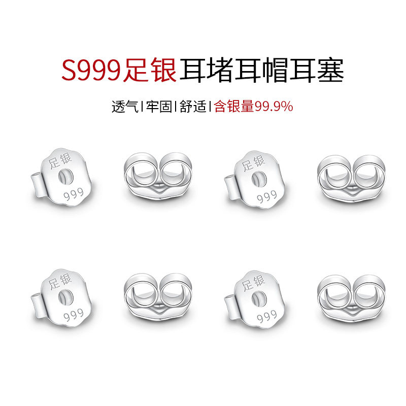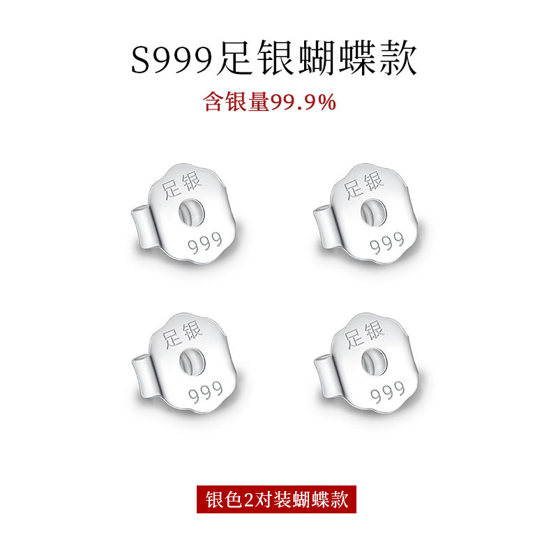【巷南】999足银蝴蝶扣耳堵百搭简约耳扣耳帽耳钉专用耳塞子配件