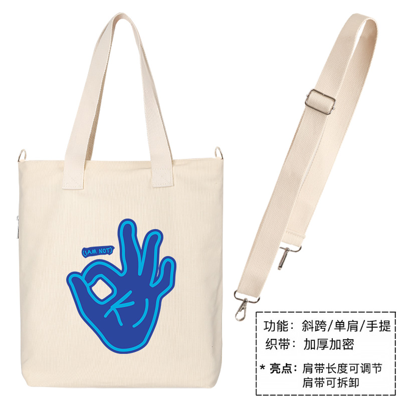 OK手势国潮趣味帆布袋女包手提袋环保购物大容量袋子男学生通勤