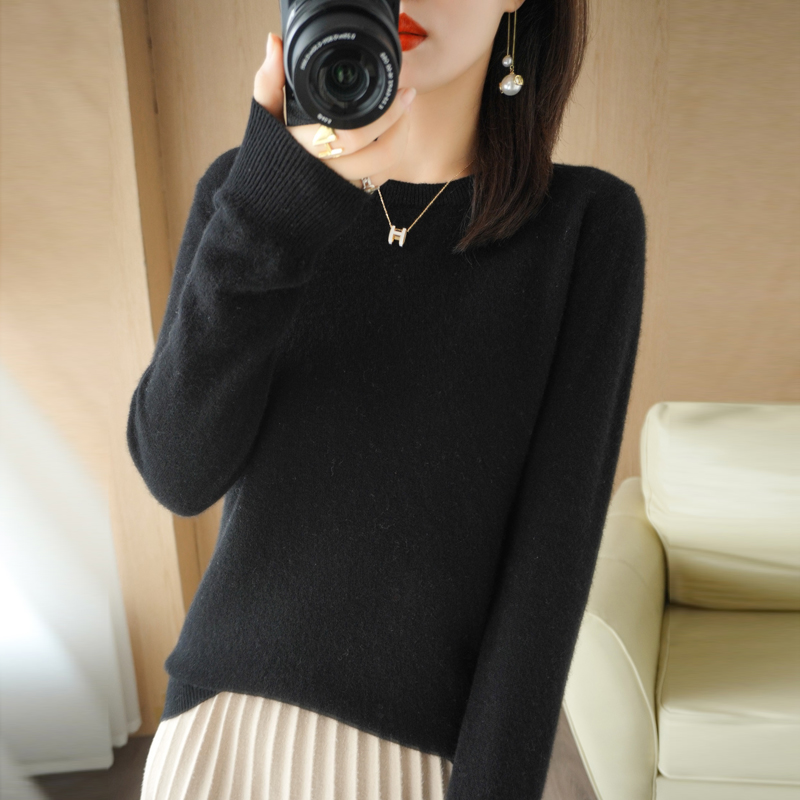 福利款!秋季圆领毛衣女修身套头针织衫羊绒内搭长袖打底上衣