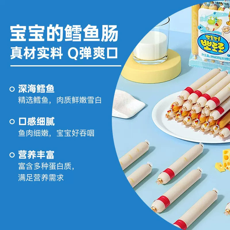韩国啵乐乐深海鳕鱼肠香肠儿童即食海味休闲零食无火腿肠肉肠添加