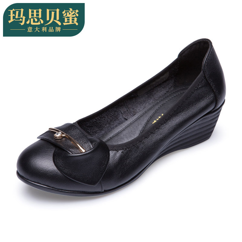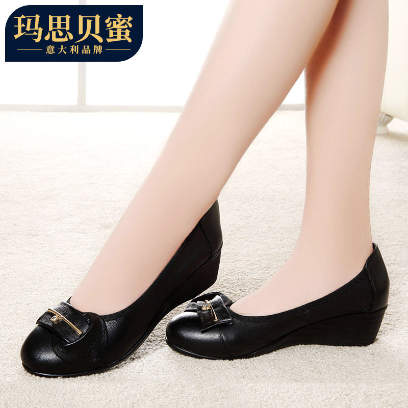 2025春季真皮软底妈妈鞋休闲平底中老年大码单鞋坡跟百搭圆头女鞋