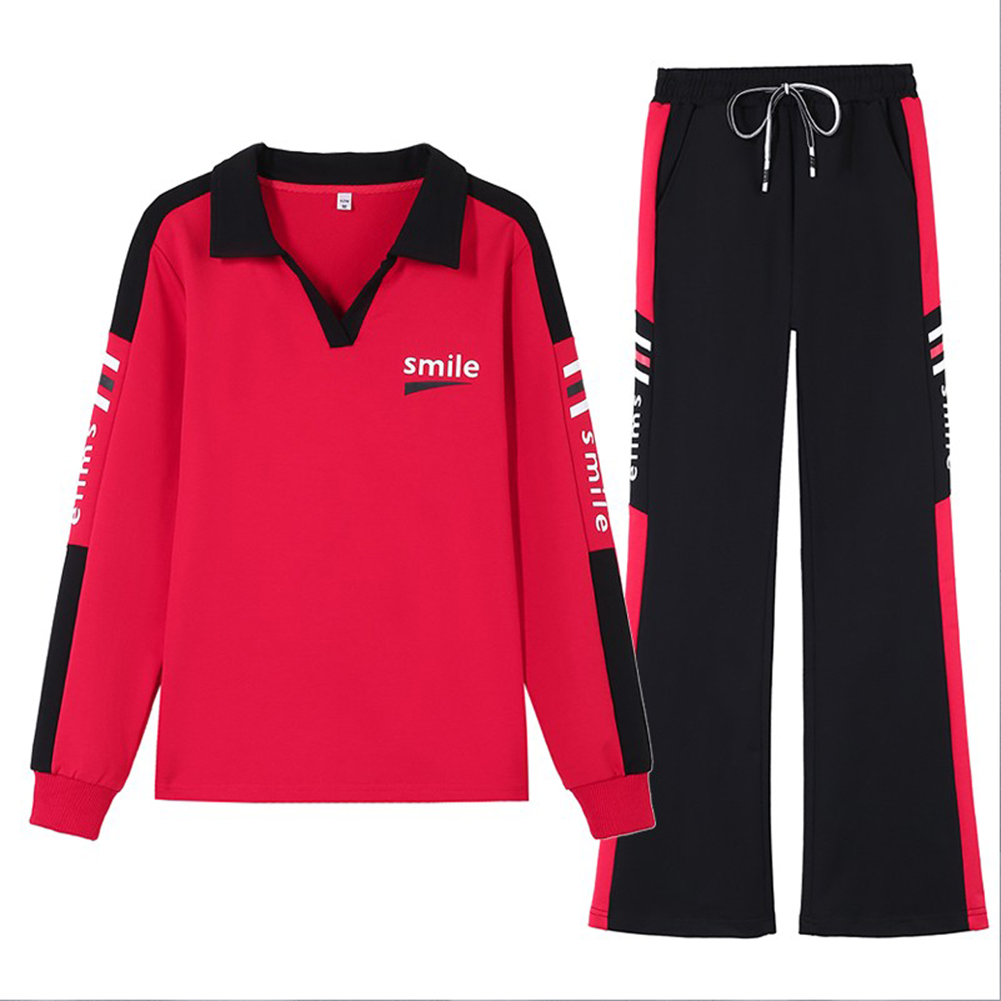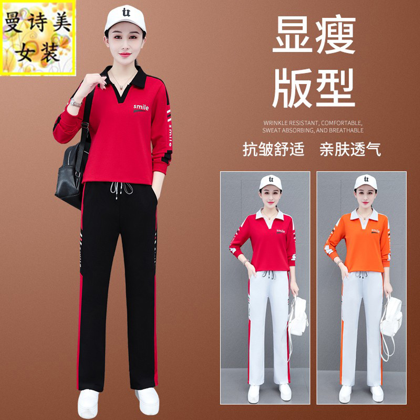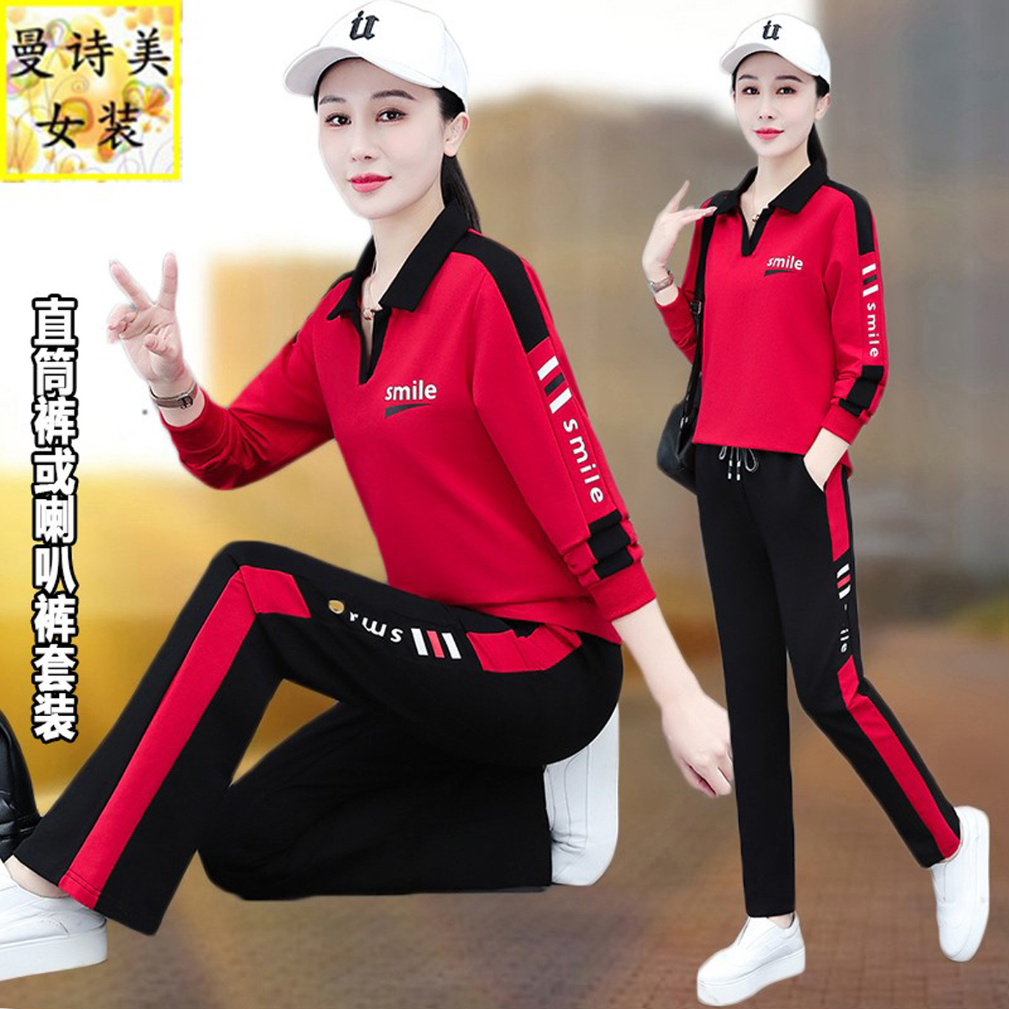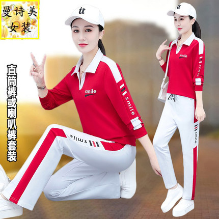 翻领喇叭或直筒裤广场舞运动服套装女2025春秋洋气长袖休闲两件套
