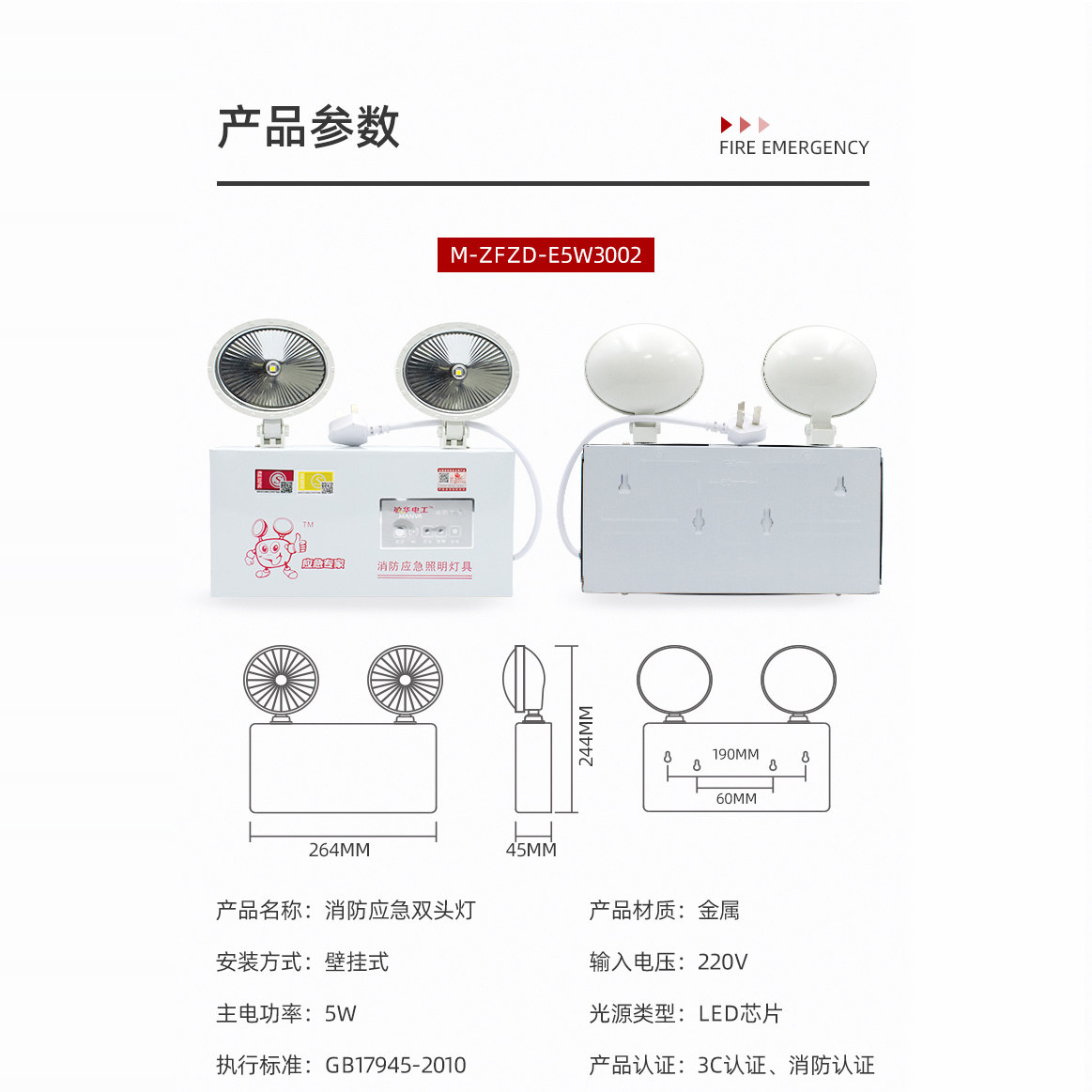 敏华消防应急灯新国标led双头应急照明灯安全出口疏散指示灯牌