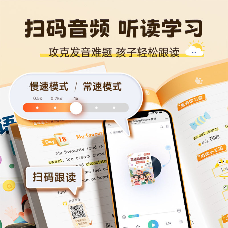 【时光学】英语晨读美文小学读出好英语100篇语文晨诵晚读口语练习书同步课堂1-6年级小学通用扫码音频伴读培养孩子朗读能力图解