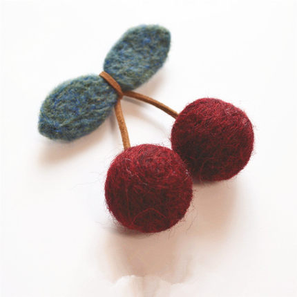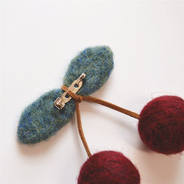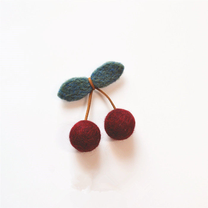 新款手工羊毛毡精致洋气樱桃胸针