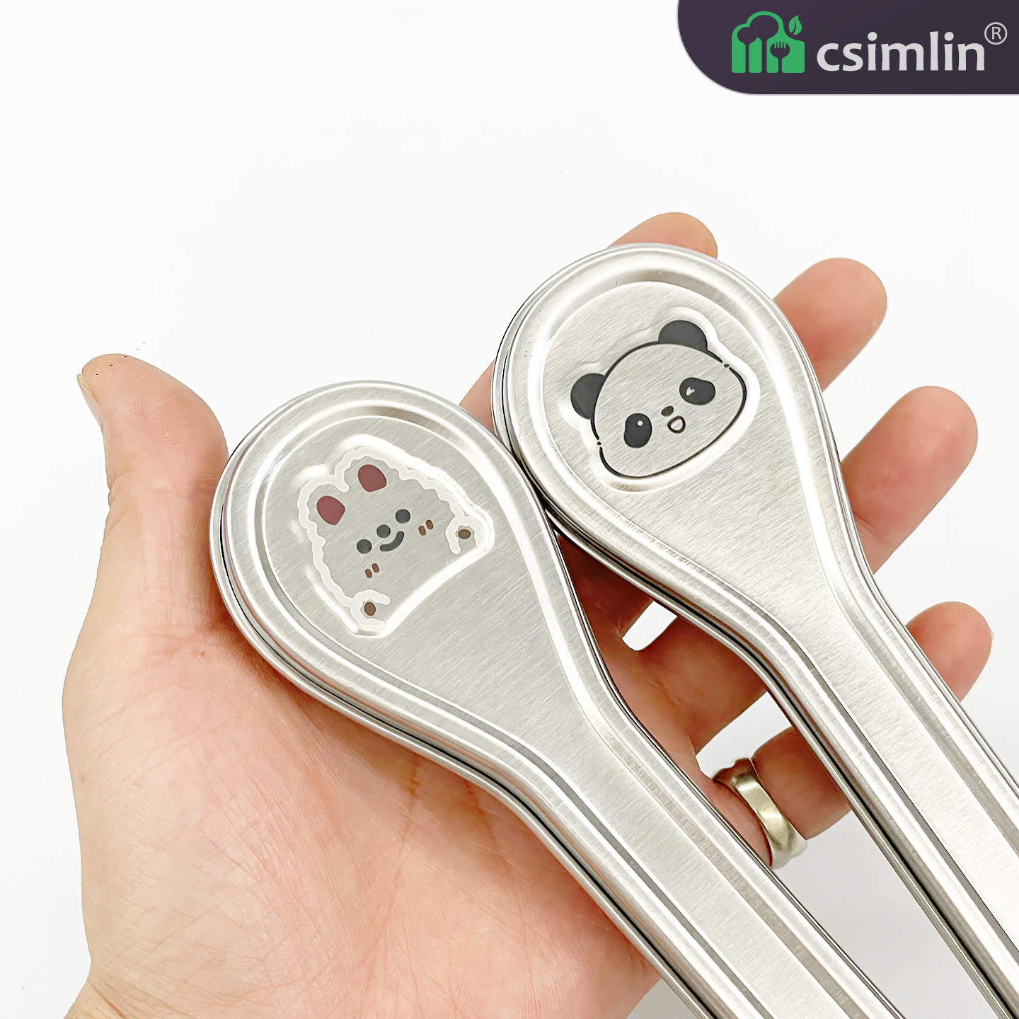厨森林316钢筷子勺子套装可爱便携餐具盒学生儿童一人用收纳盒小