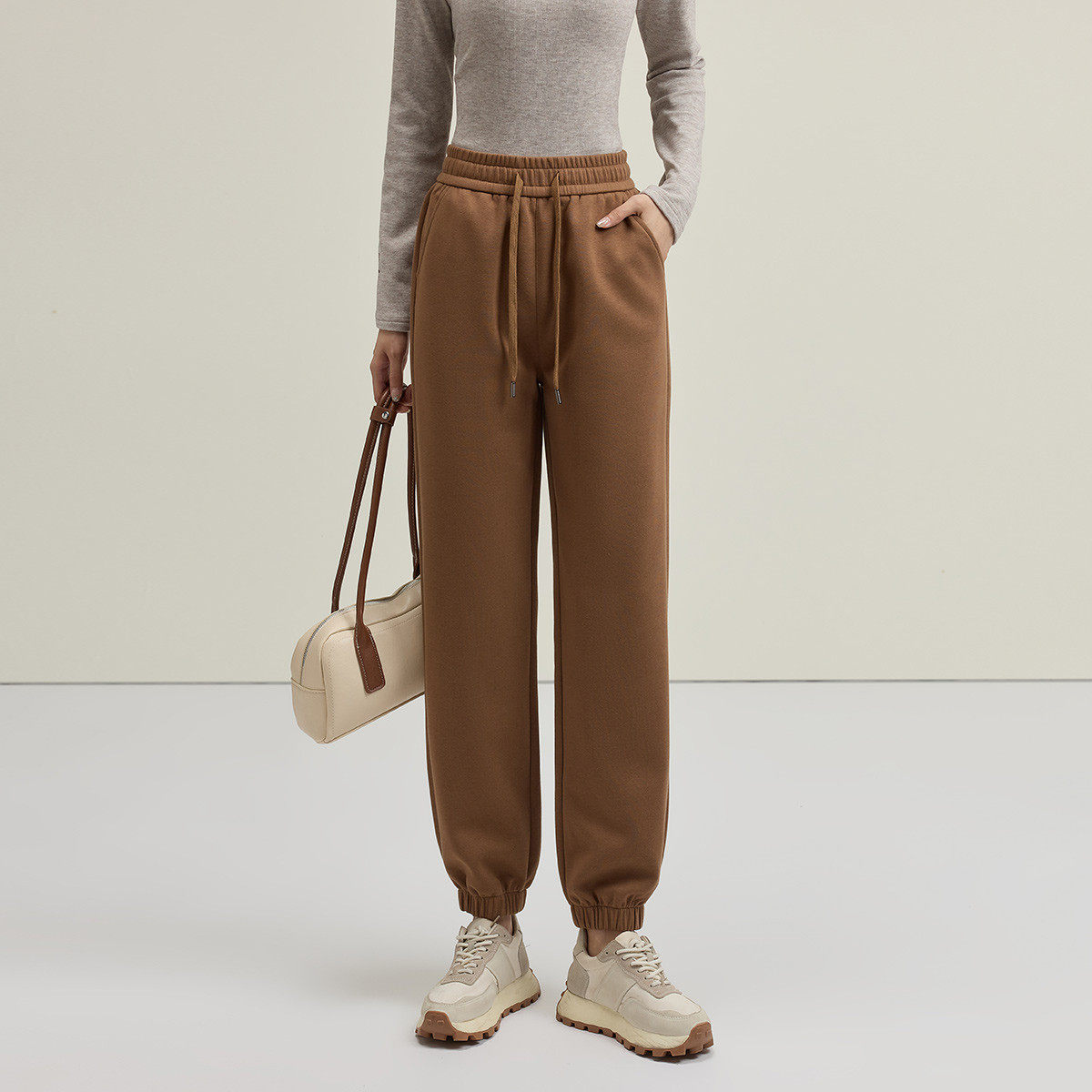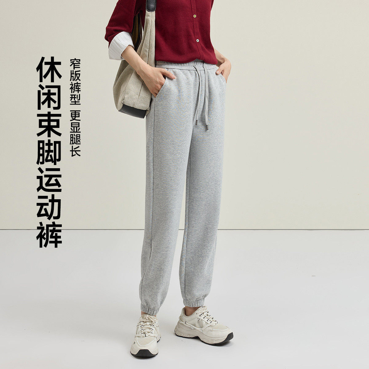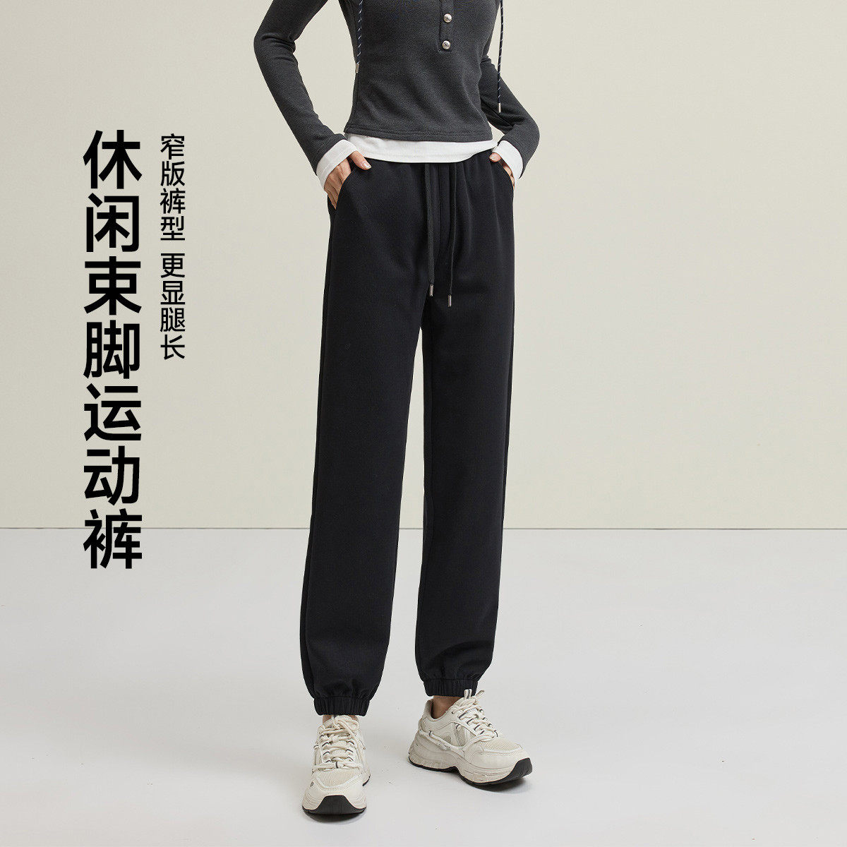 茵曼2026春季新款休闲裤子女士卫裤舒适运动户外束脚纯色百搭宽松