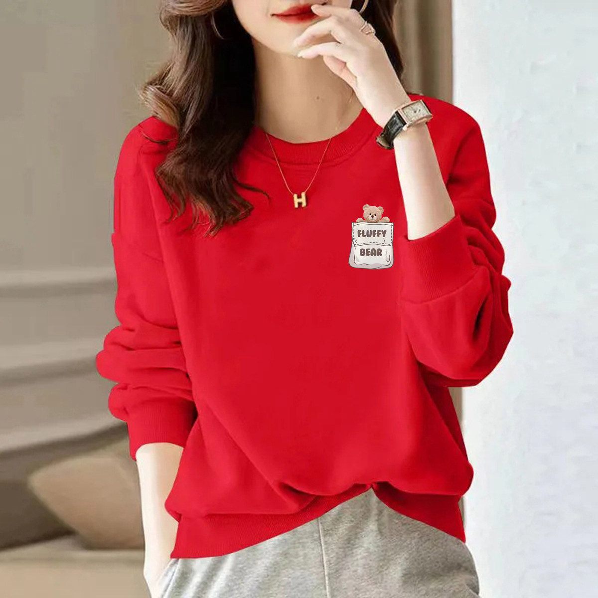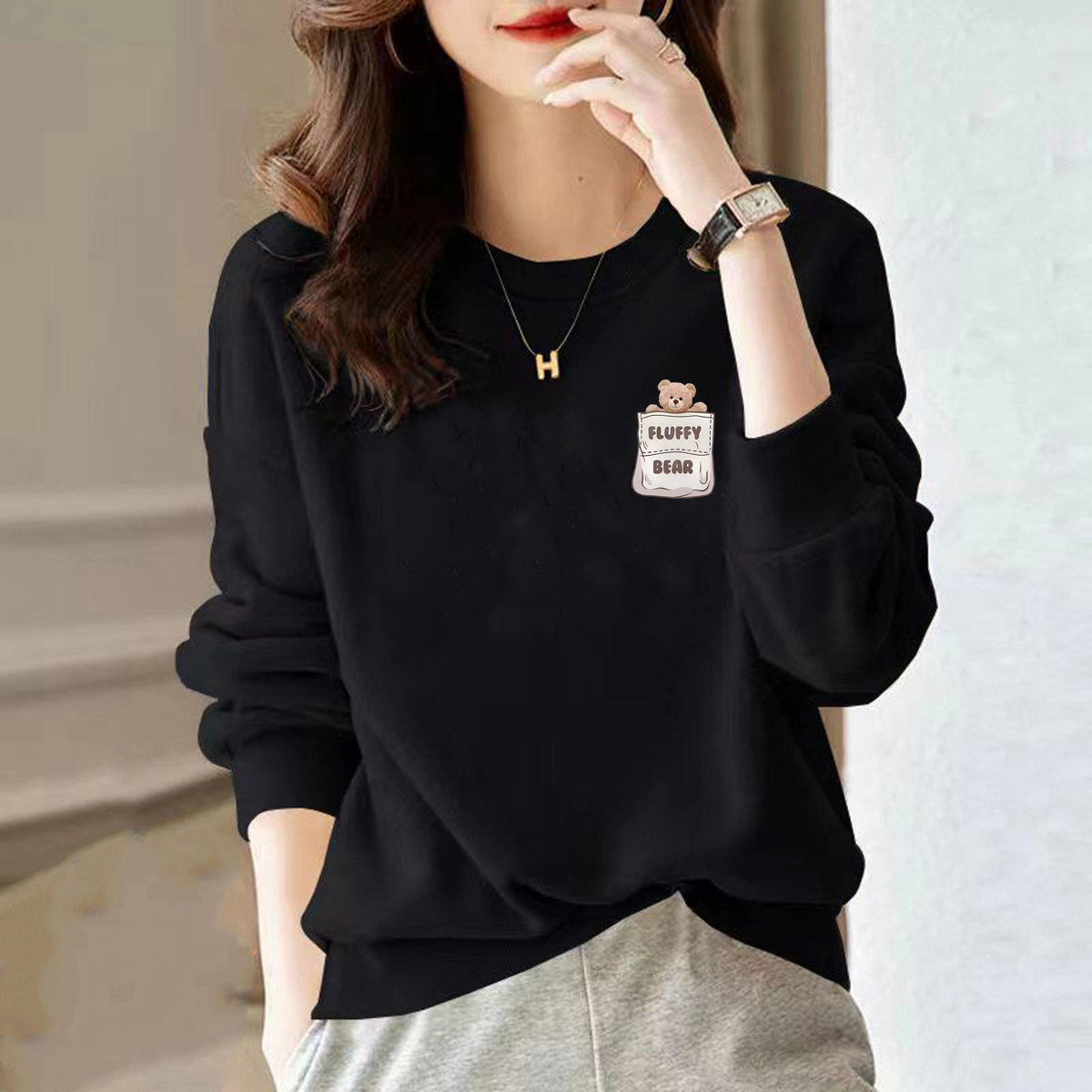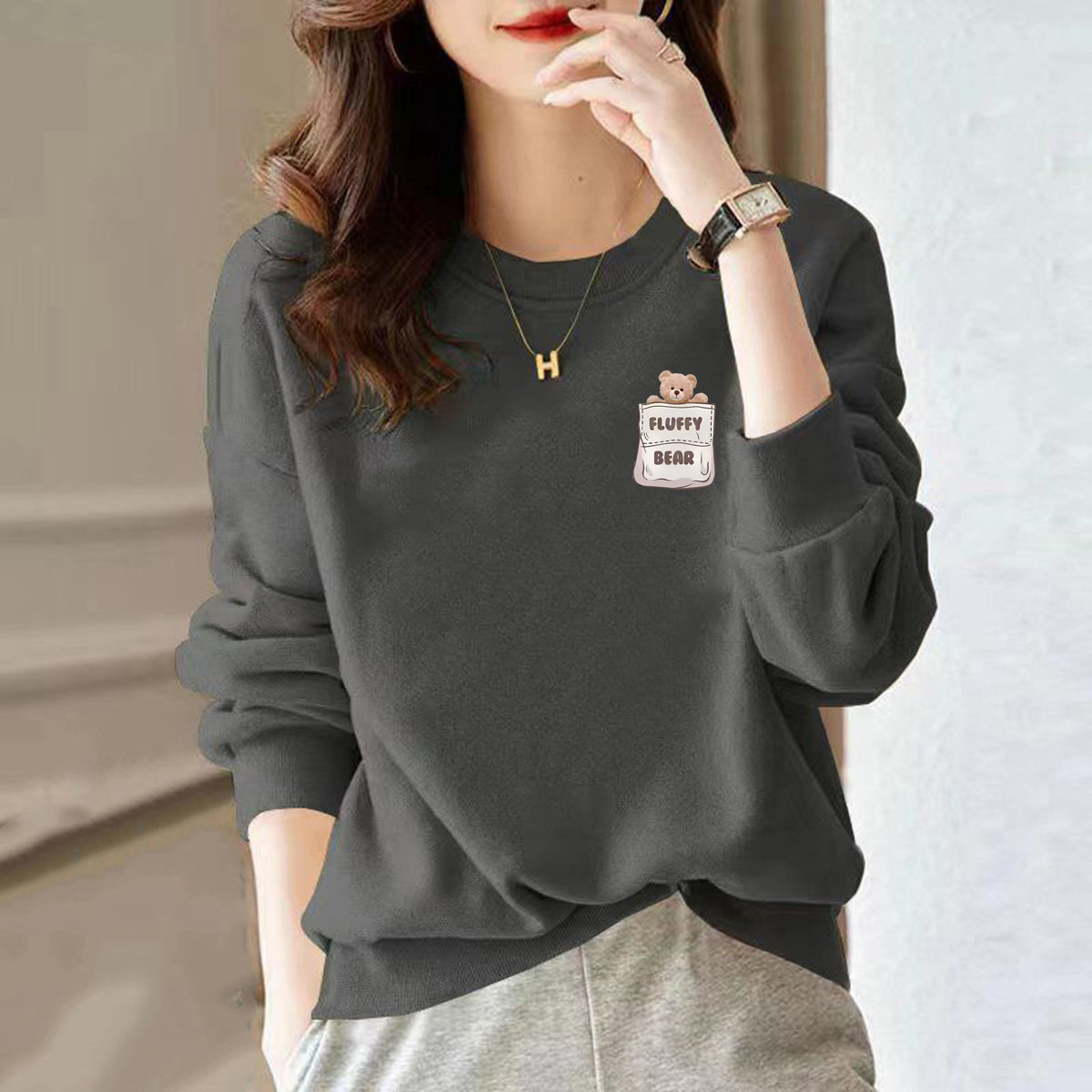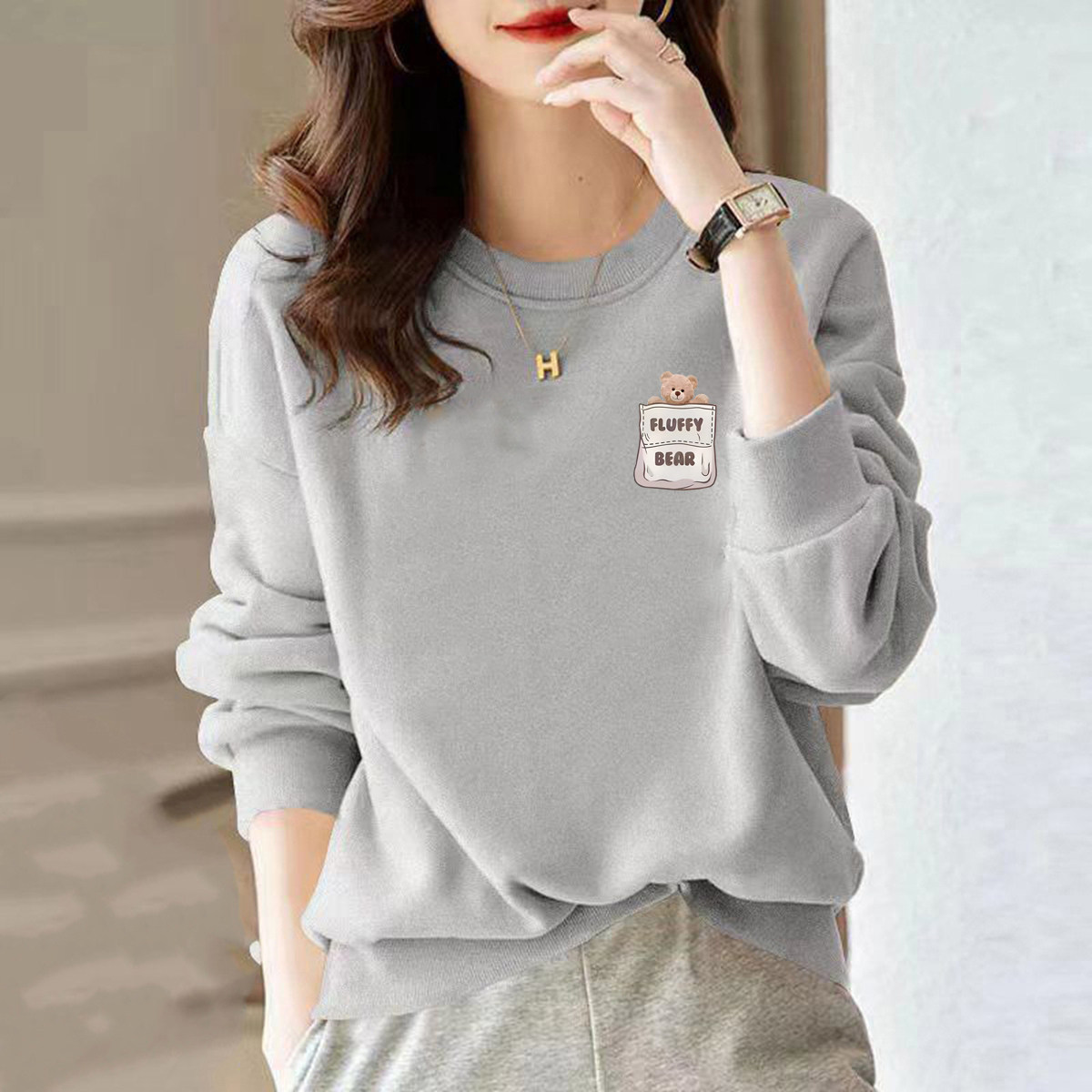 品牌薄款春秋宽松女士印花卫衣女