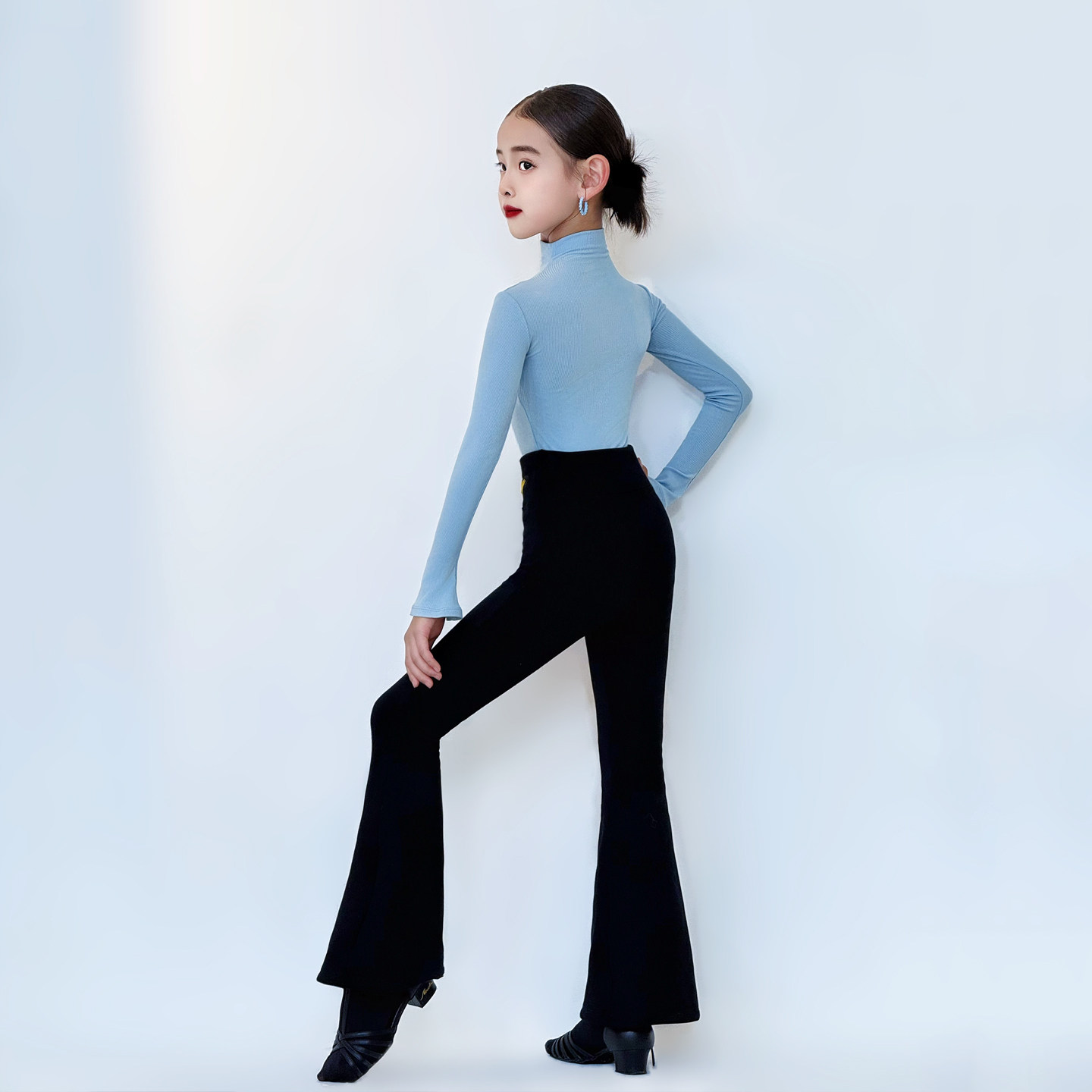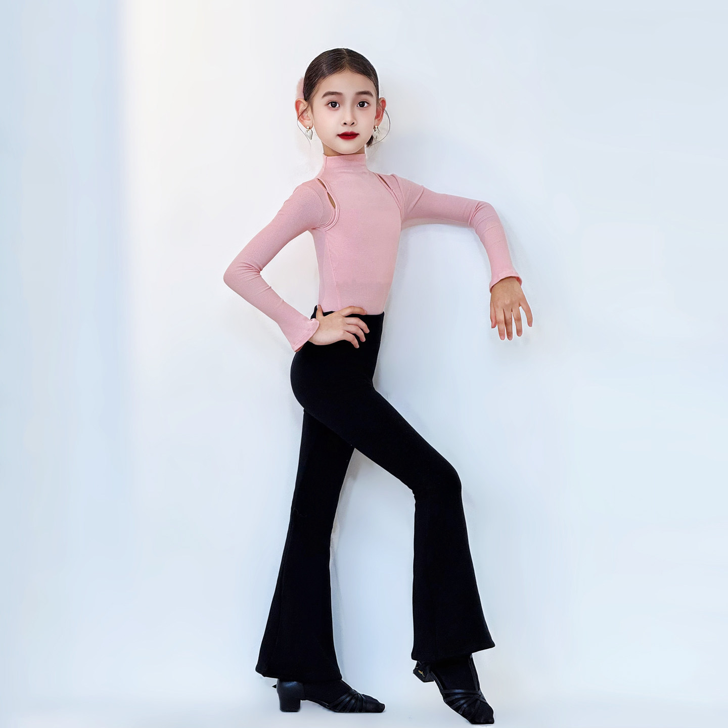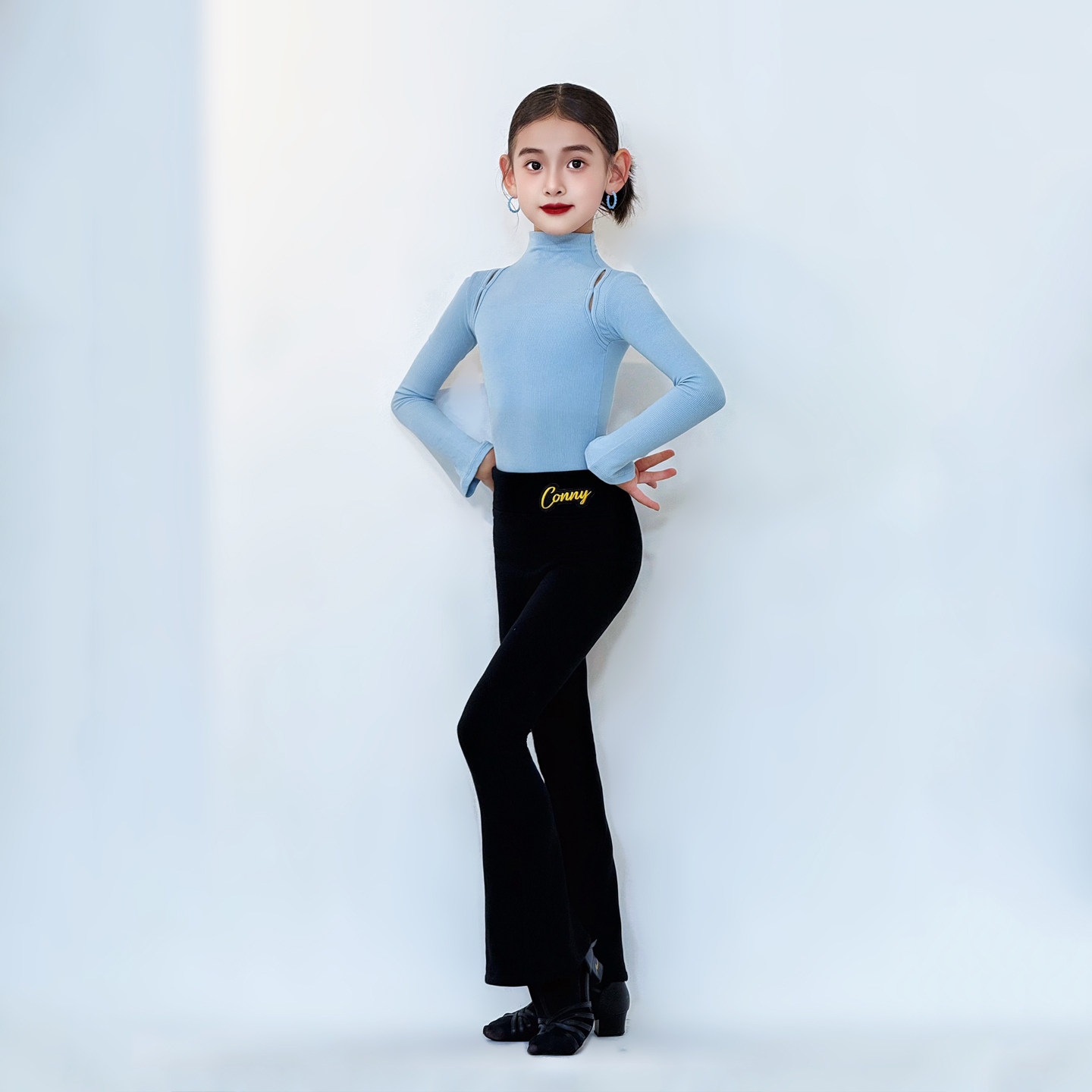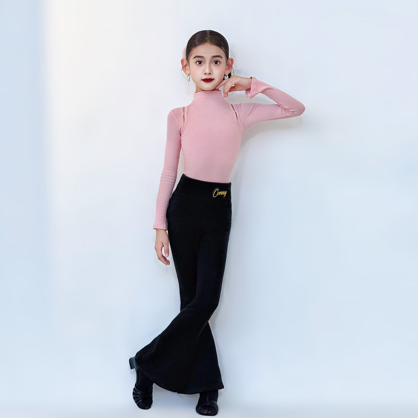 CONNY康尼拉丁舞套装女儿童微喇叭长裤长袖上衣日常舞蹈训练功服