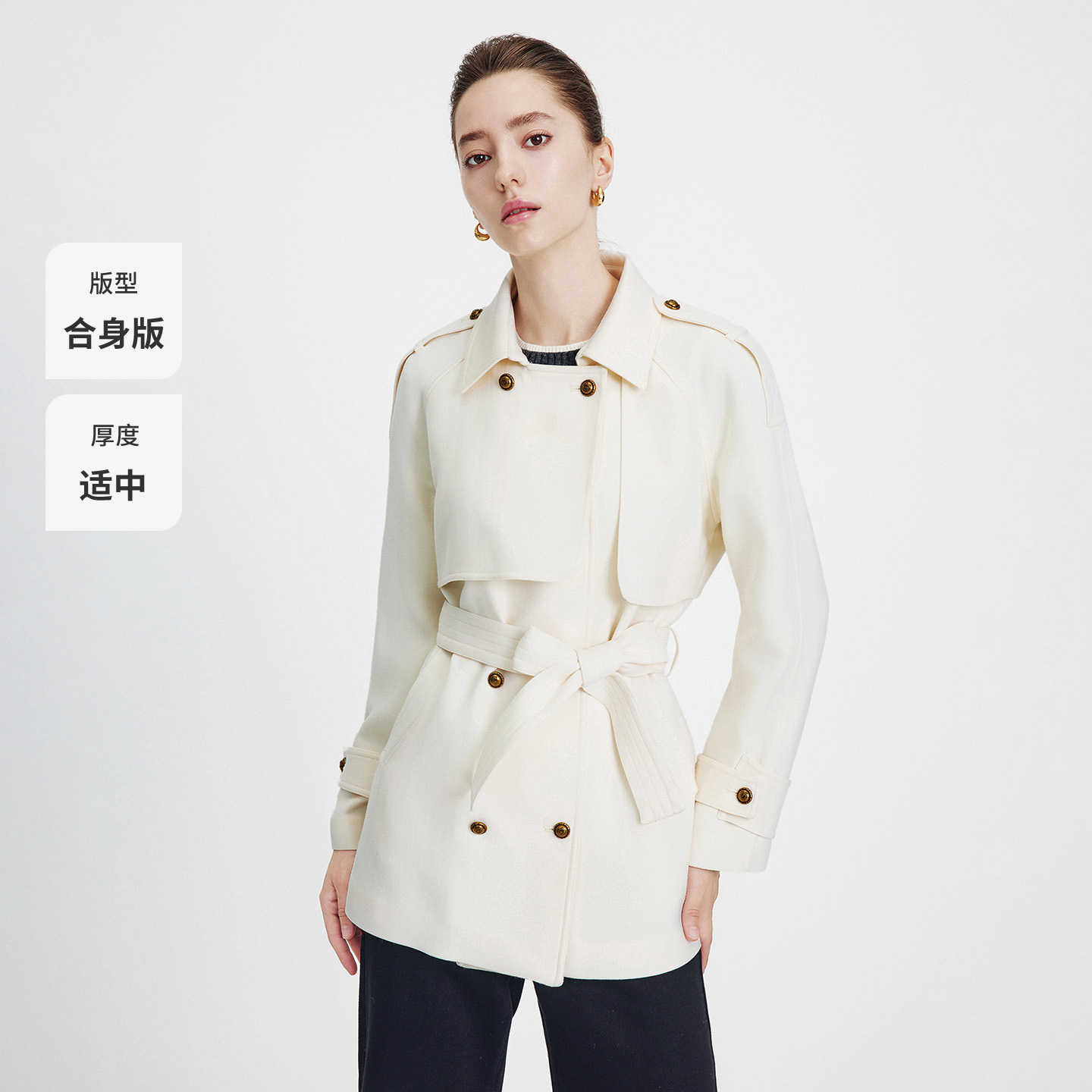 Navigare意大利小帆船秋冬季中长款风衣外套女士白色纯羊毛呢大衣