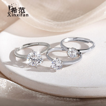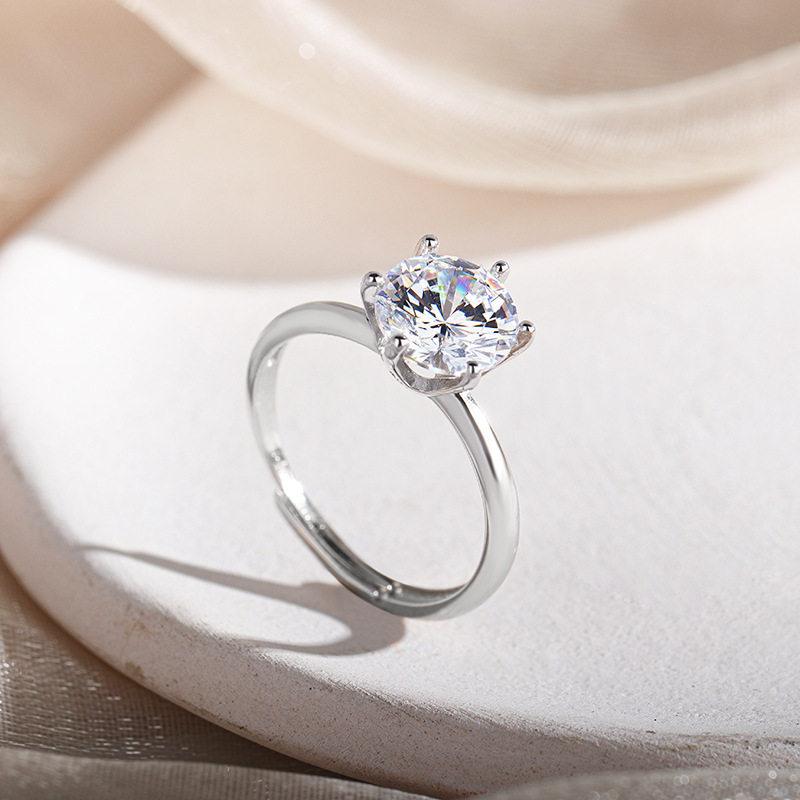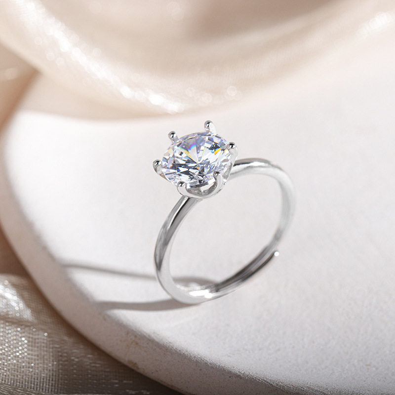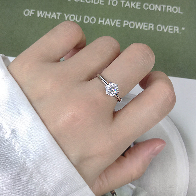 925纯银克拉六爪钻戒指女生简约浪漫仿真钻戒求婚结婚指环送老婆