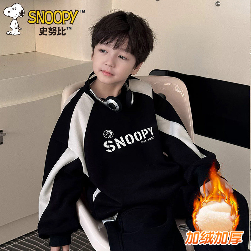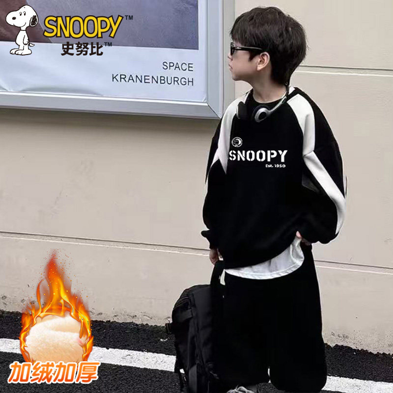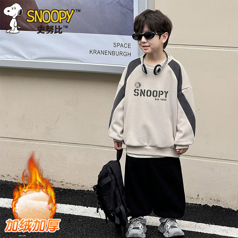 史努比儿童秋冬季新款休闲时尚潮酷男女童拼色韩版运动卫衣