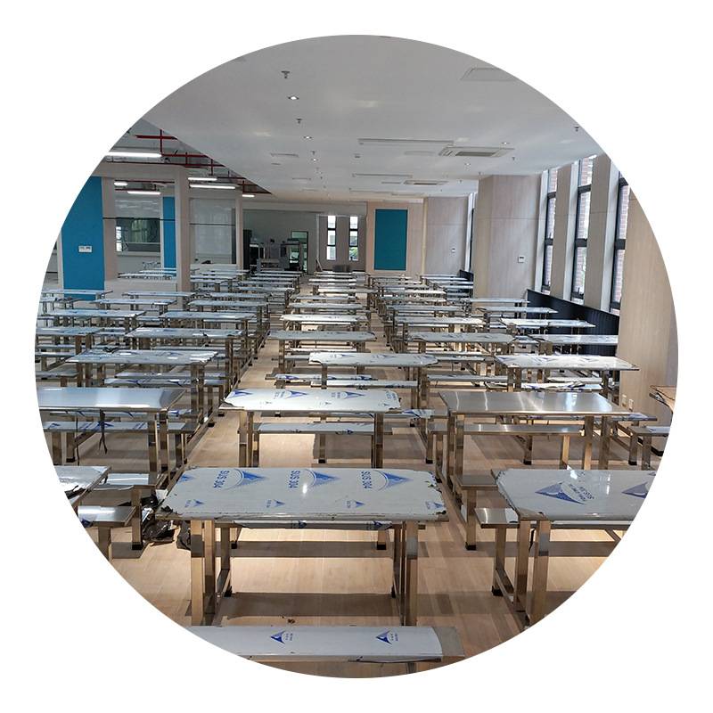 学生食堂餐桌不锈钢桌椅组合员工餐桌椅四人位户外连体长方形餐桌