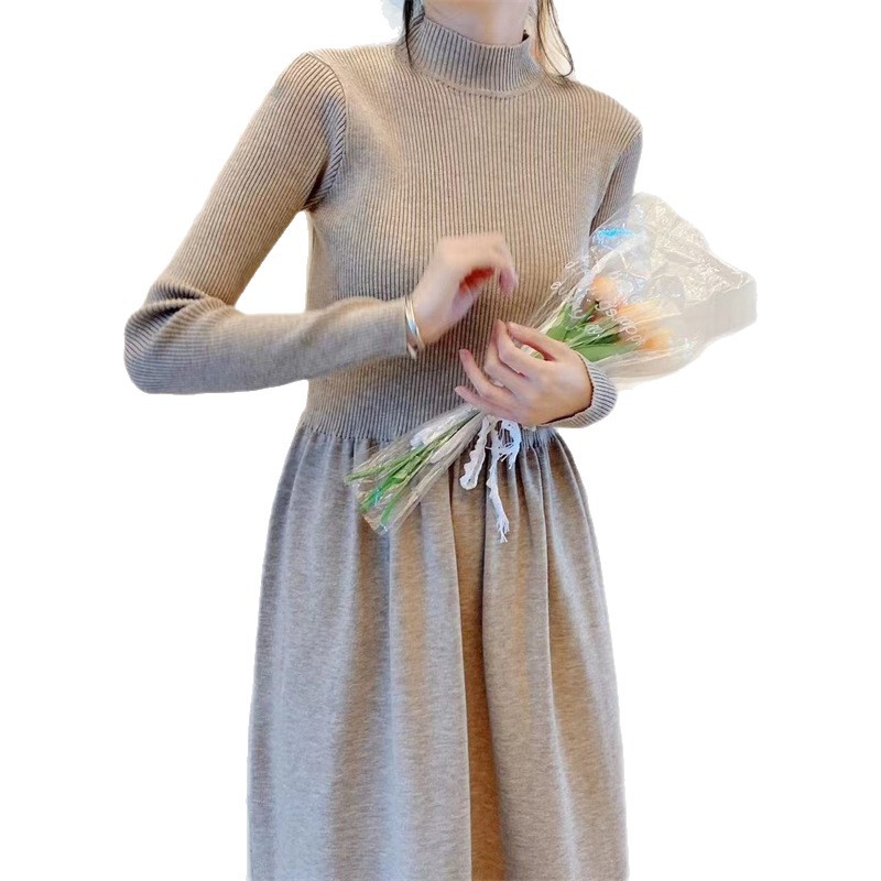 2025法式秋冬新款长袖针织连衣裙半高领内搭中长款打底过膝毛衣裙