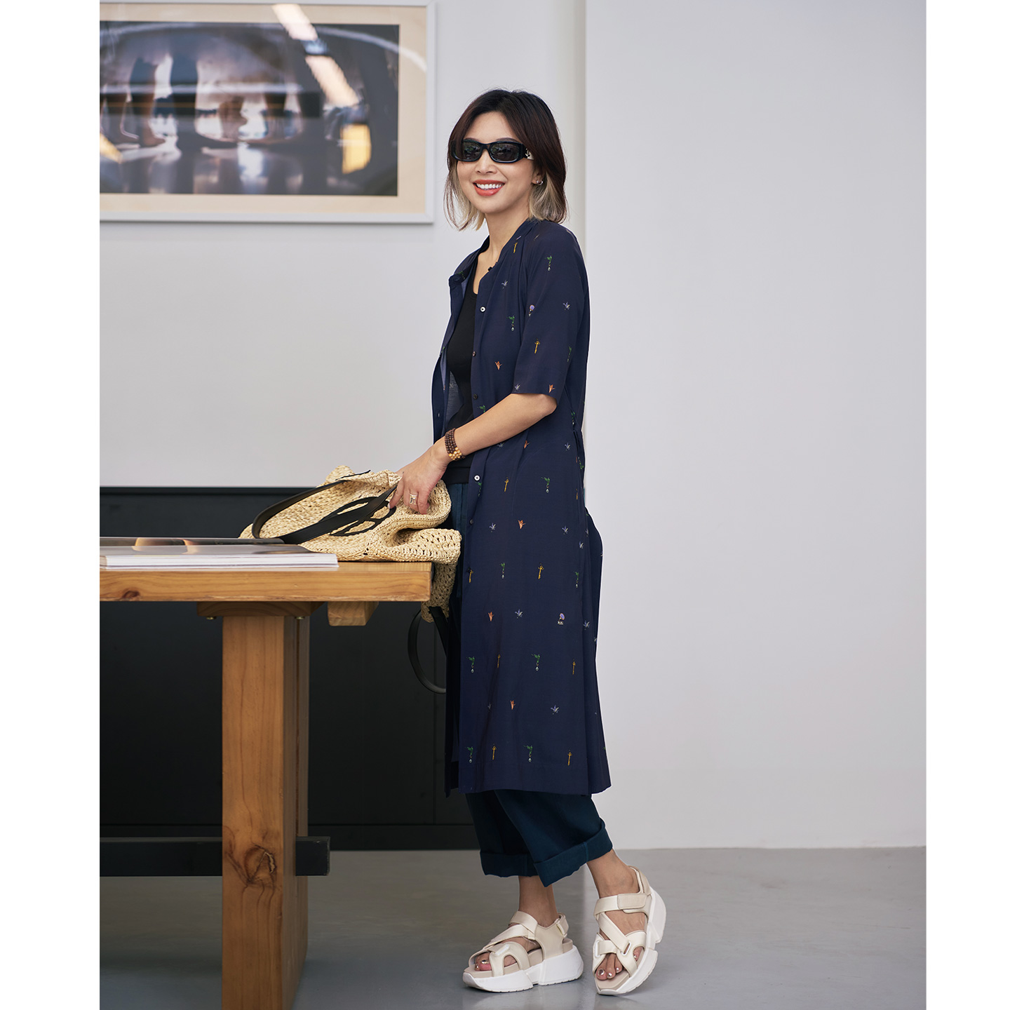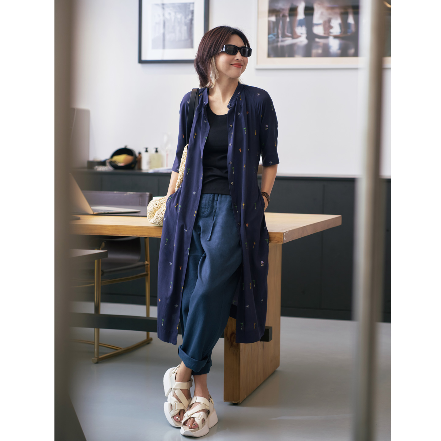 ise“玩趣”含桑蚕丝圆领衬衫款藏蓝色设计图案连衣裙D2520767