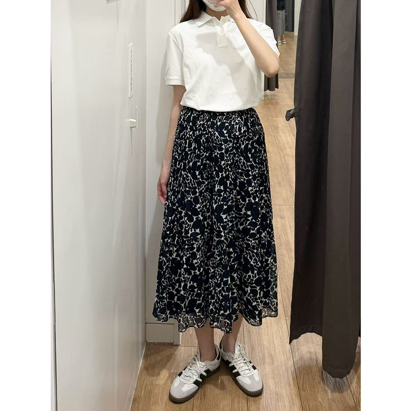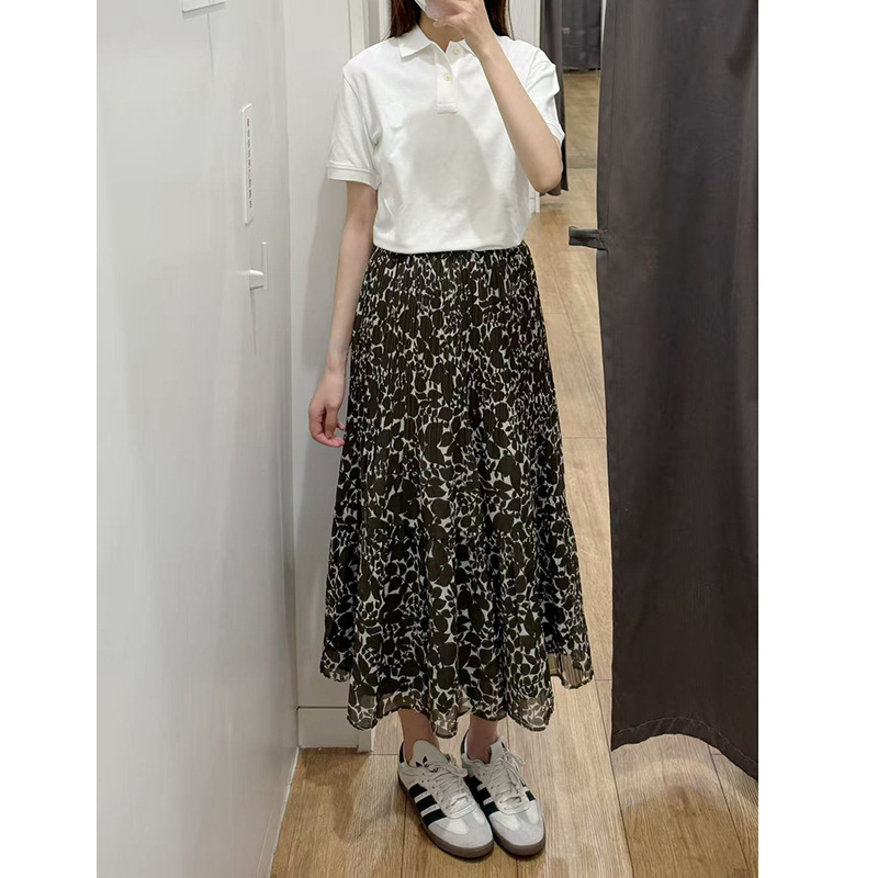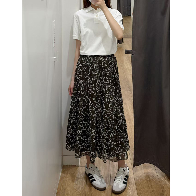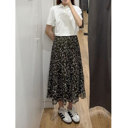 商场同款女装雪纺印花褶皱裙松紧腰长裙层叠显瘦半身裙480810/480