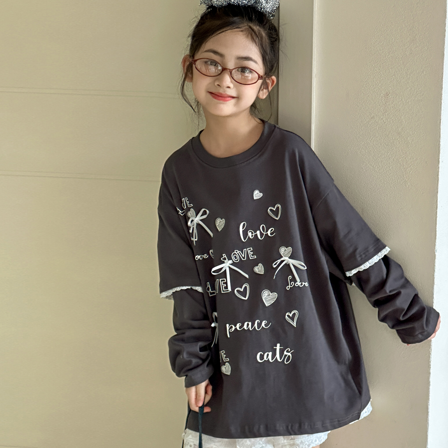 女童长袖T恤春秋款2025新款青少年儿童秋季上衣女大童休闲打底衫