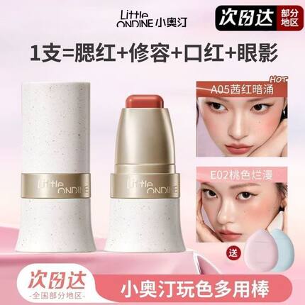 小奥汀玩色多用棒水润腮红修容阴影口红眼影一体提亮膨胀色多用膏