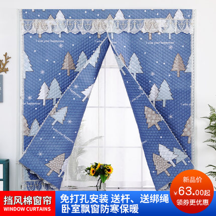 棉窗帘免打孔加厚冬季保暖防风挡寒遮光卧室空调挡风密封窗户保温