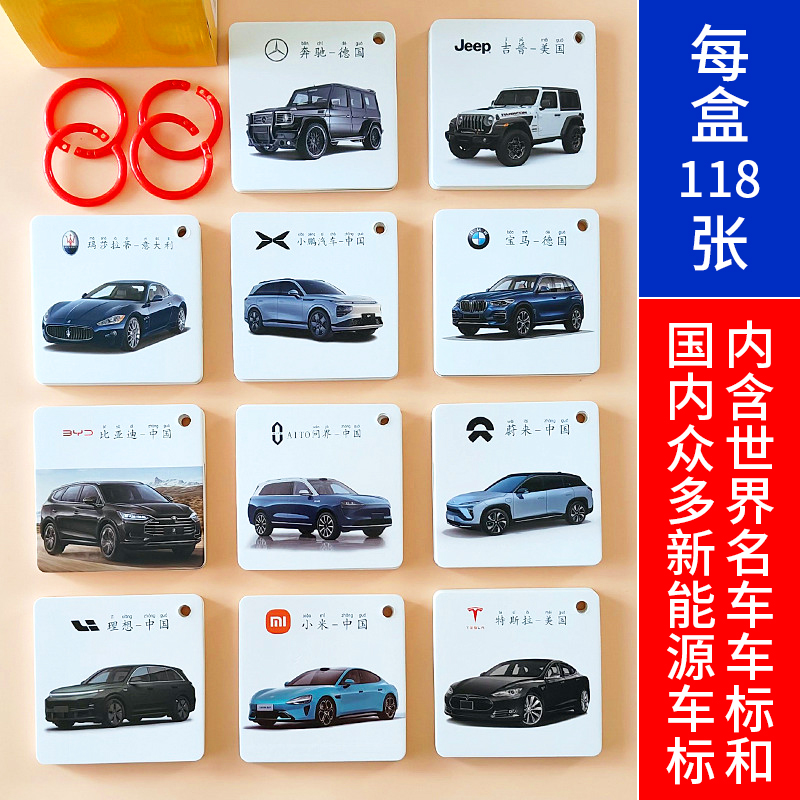 儿童汽车标志卡片品牌大全宝宝看图识物早教启蒙认知卡撕不烂玩具