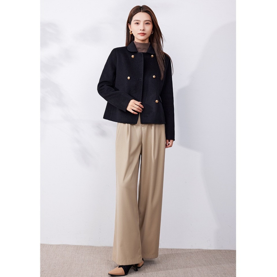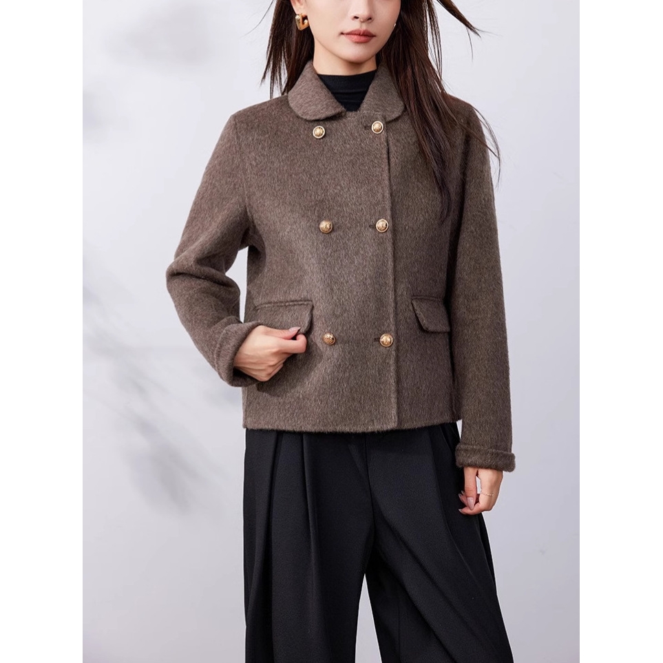 双面羊毛大衣女短款2025秋冬新款宽松气质双排扣双面毛呢外套高级