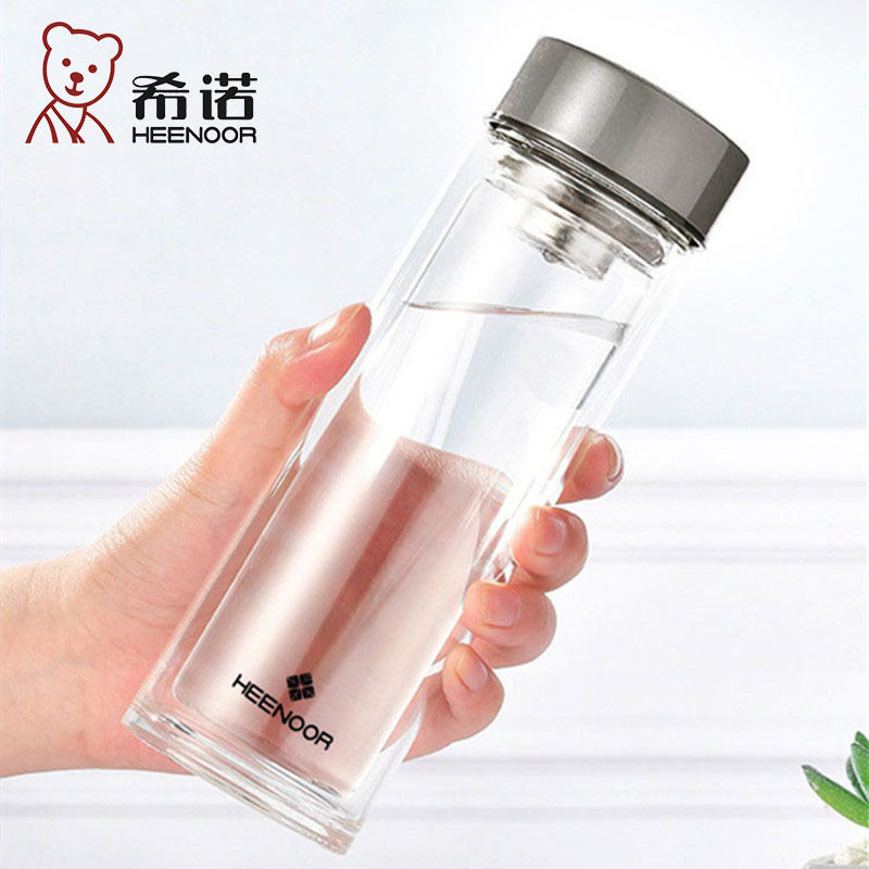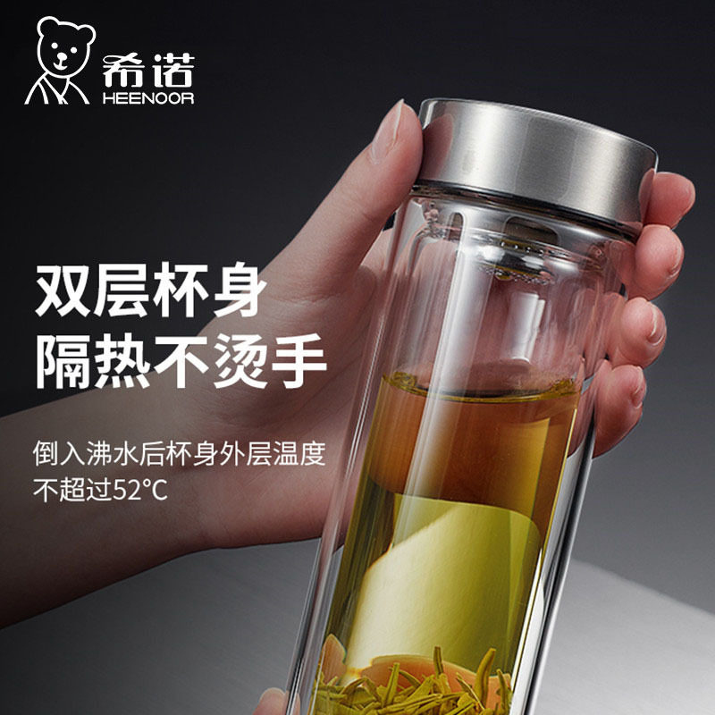 希诺双层玻璃水杯刻字logo车载泡茶杯会议礼盒装保温杯子希诺9379