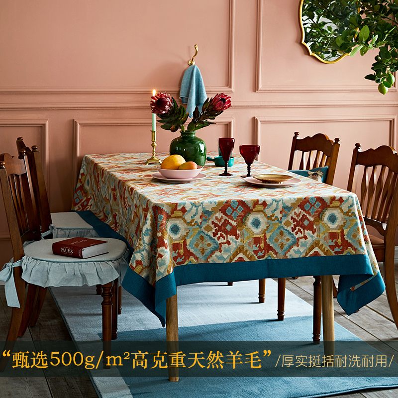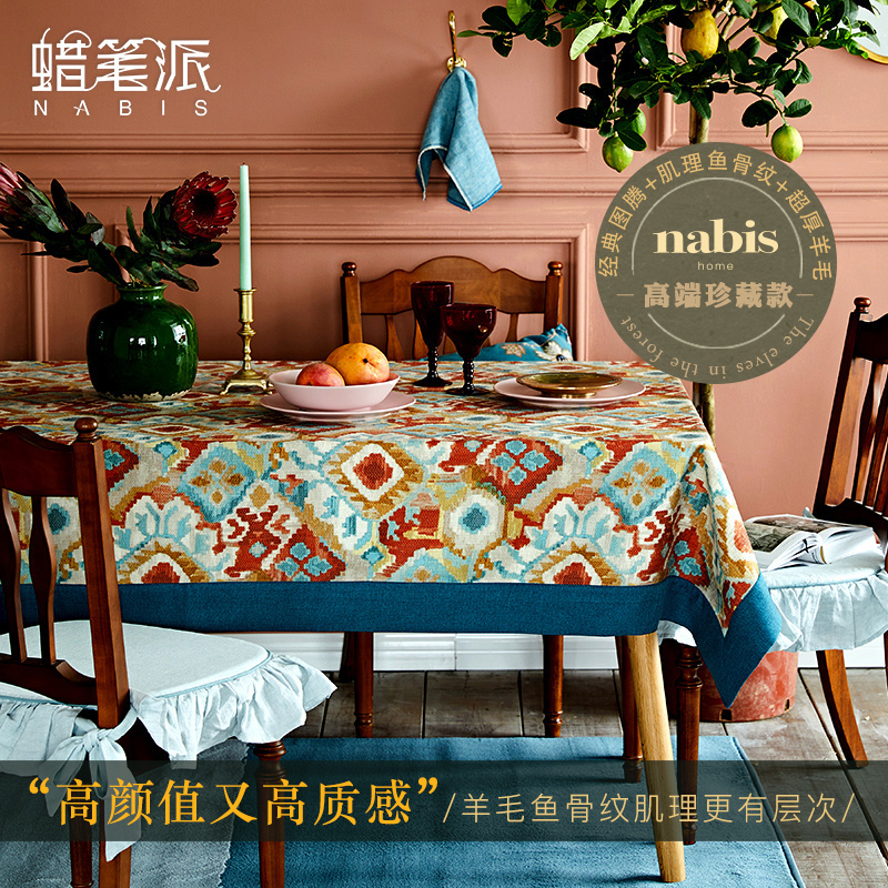 蜡笔派印第安美式k餐桌布茶几高级感圆餐桌布艺防水亚麻长方形台