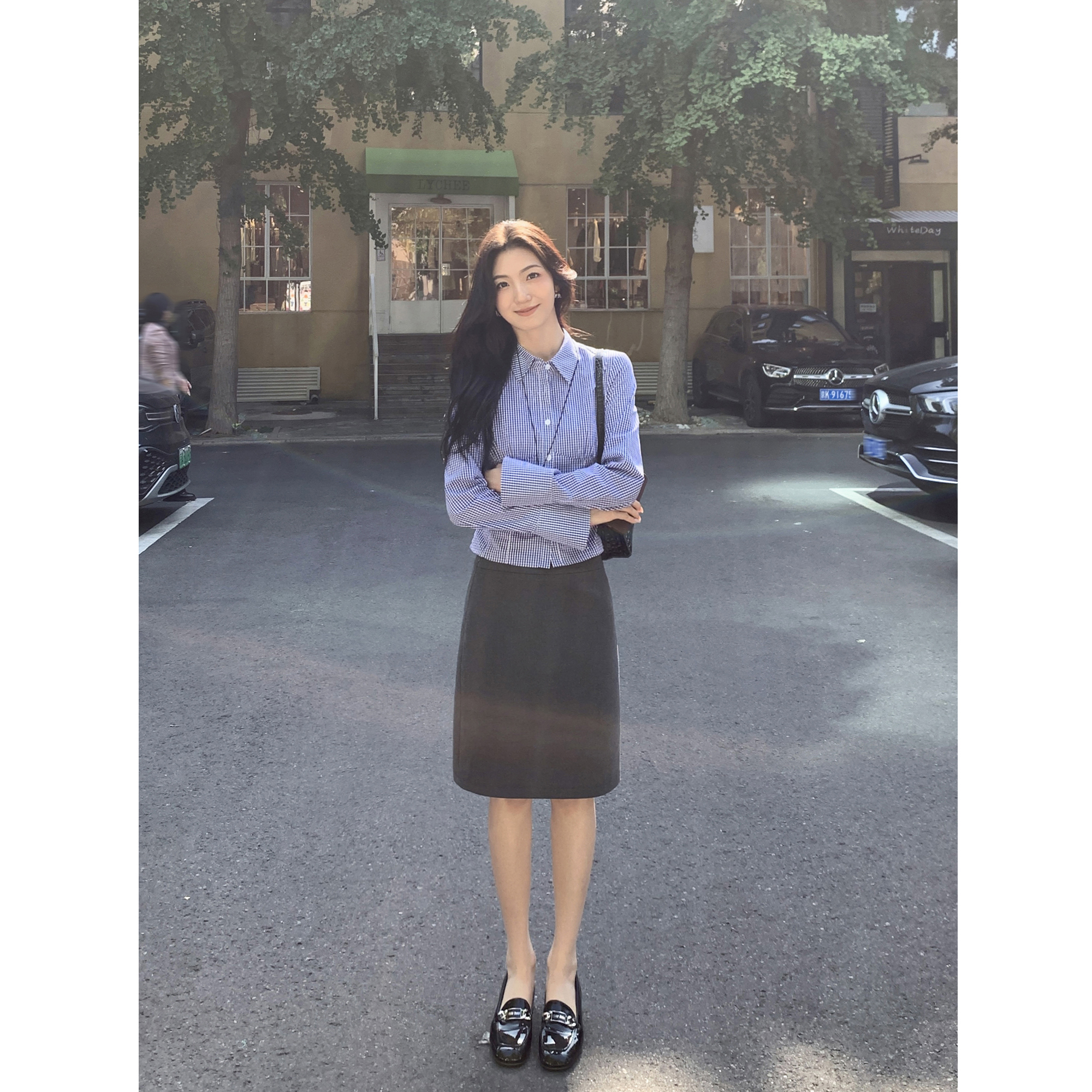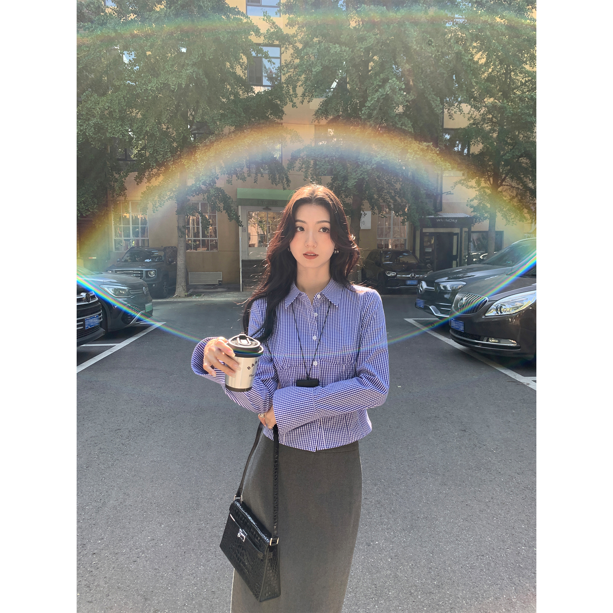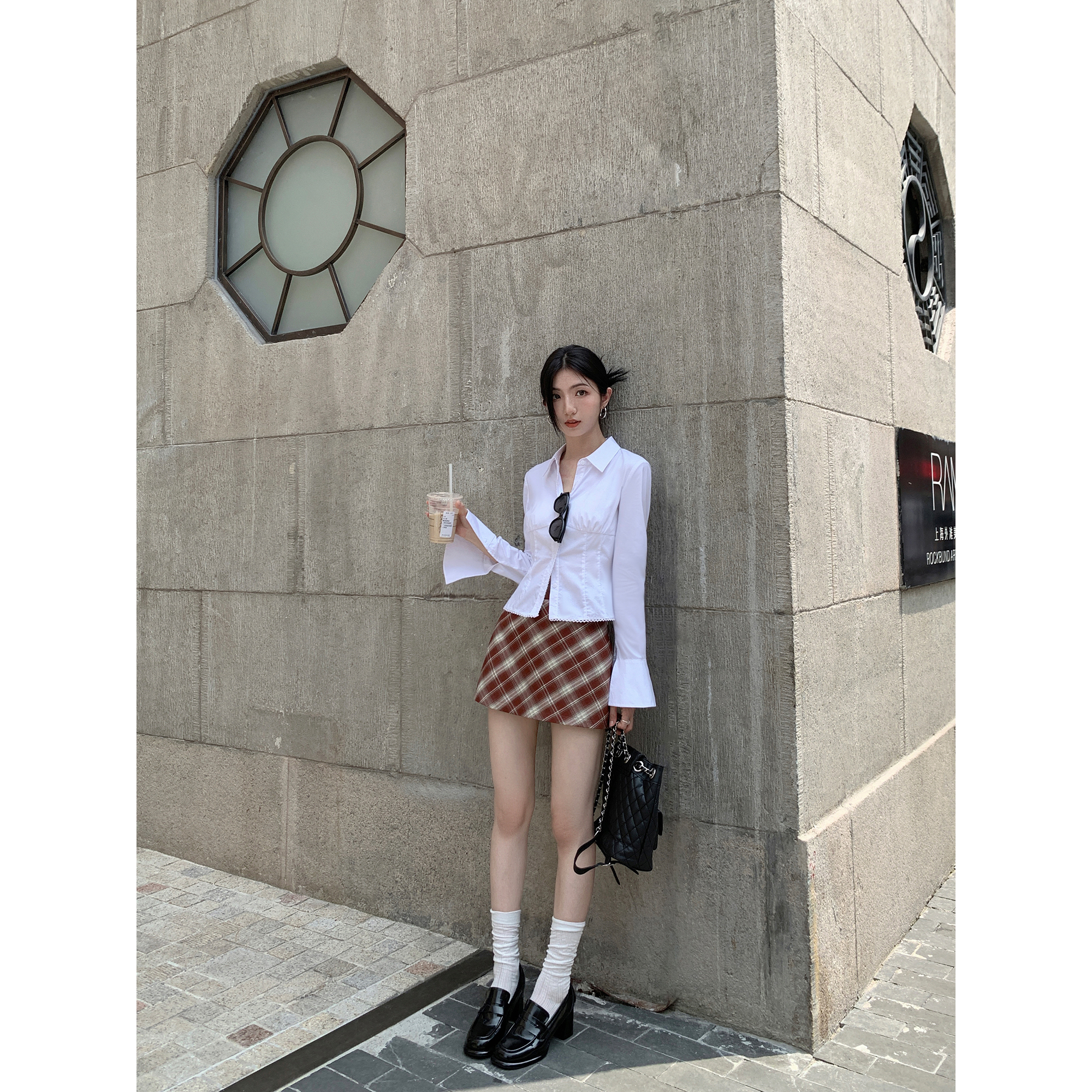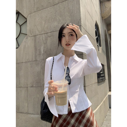 MULVAN白色长袖衬衫女新款春秋设计感收腰显瘦气质学院风衬衣