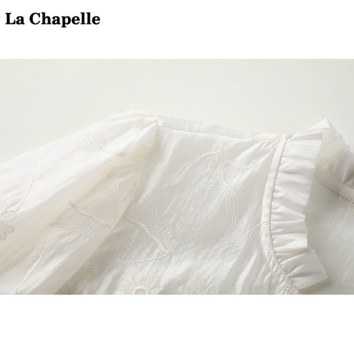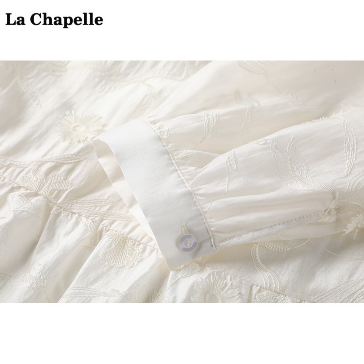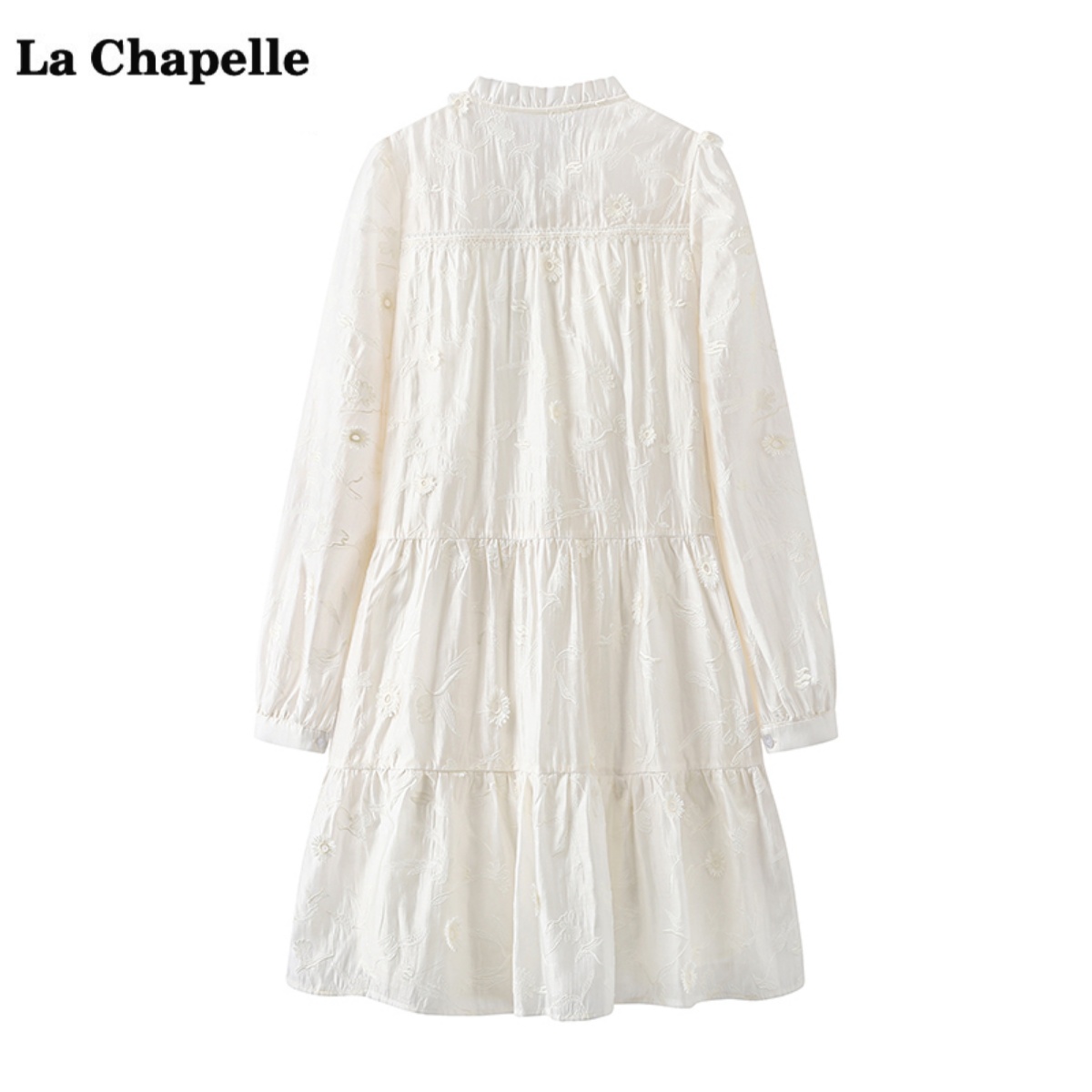 拉夏贝尔/La Chapelle系带提花长袖连衣裙女春季新款中长款a字裙