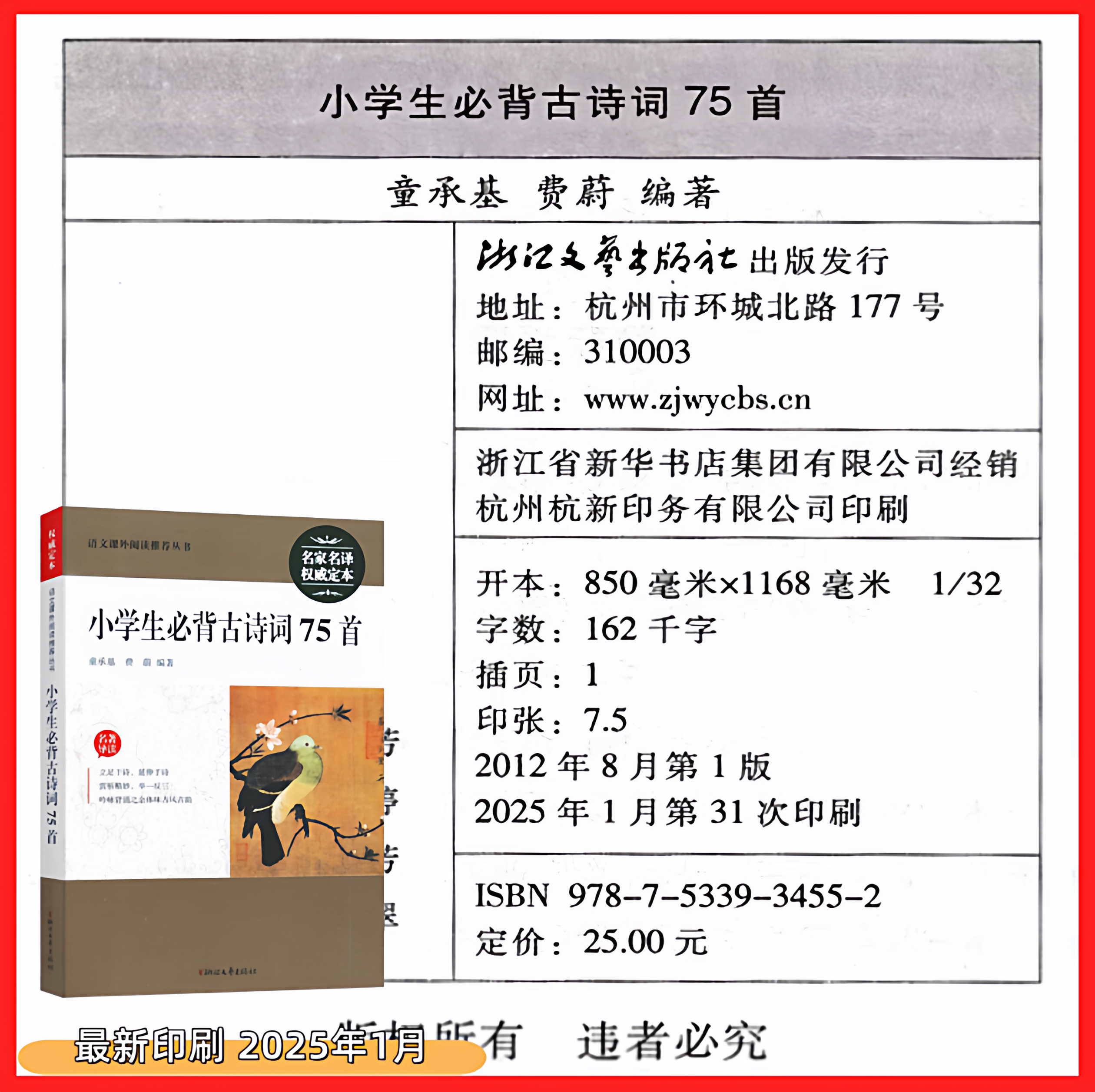 2026版 小学生必背古诗词75首 注音注释版 部编版 名著导读 全文翻译 义务教育语文推荐篇目课程新课标古诗文古诗词大全浙江文艺