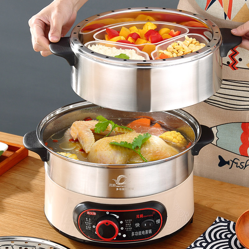 无孔节能电蒸锅多功能蒸饭锅不锈钢不串味家用定时插电三层电蒸笼
