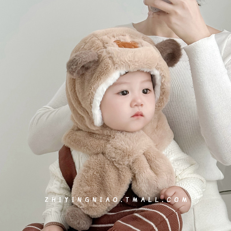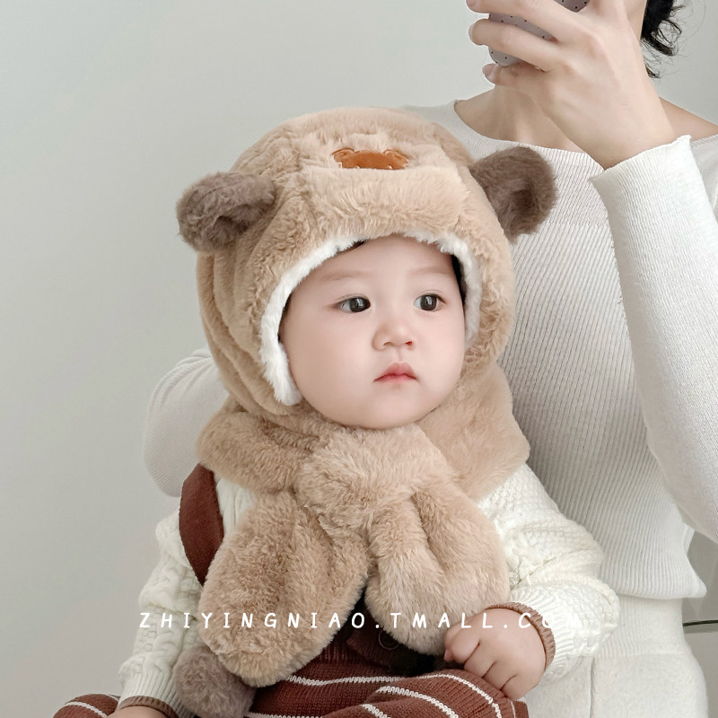 儿童帽子秋冬季围巾一体帽可爱超萌保暖加厚毛绒帽男女宝宝护耳帽