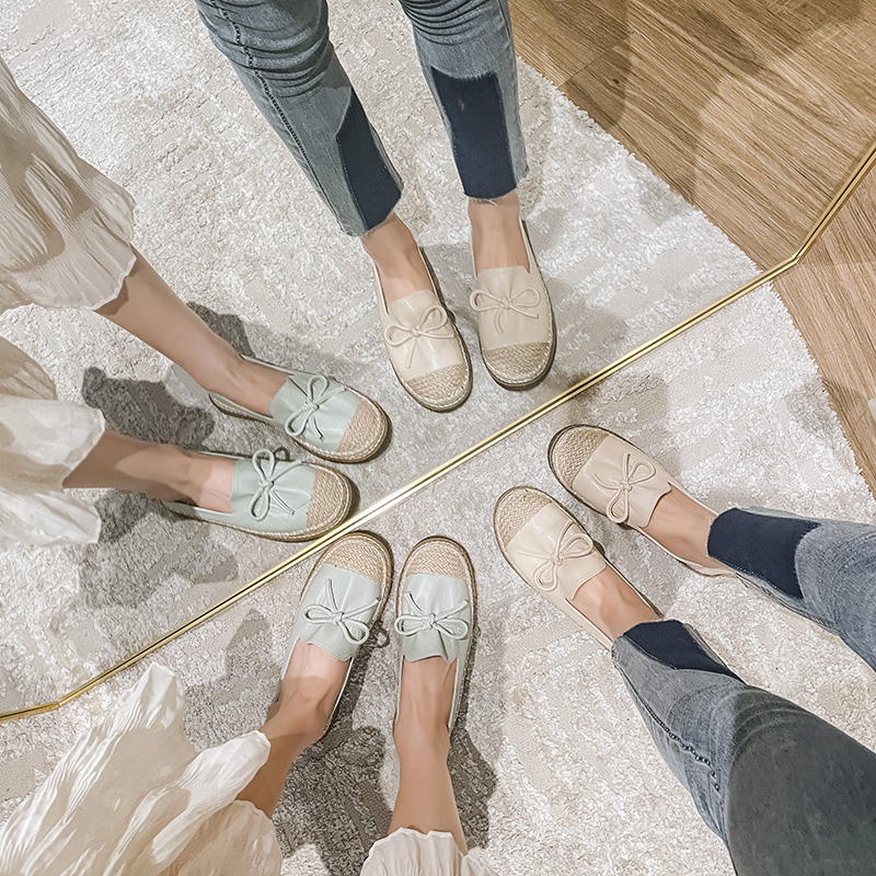 一脚蹬渔夫鞋女秋透气2025新款平底单鞋休闲豆豆鞋大码女鞋41到43