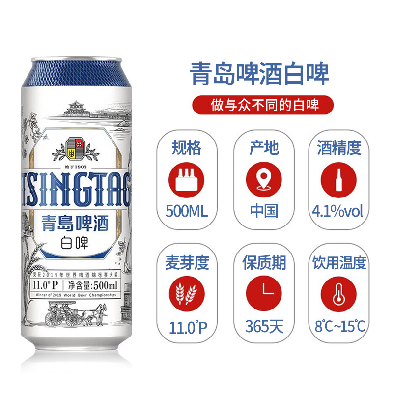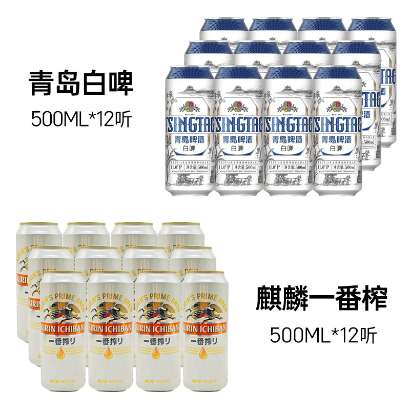 青岛啤酒白啤500ml*12罐麒麟啤酒500ml*12罐整箱罐装国产啤酒包邮