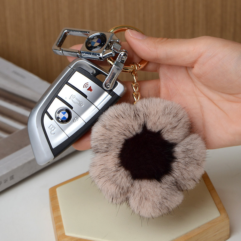可爱水貂毛太阳花书包包挂饰创意简约毛绒樱花网红汽车钥匙扣挂件