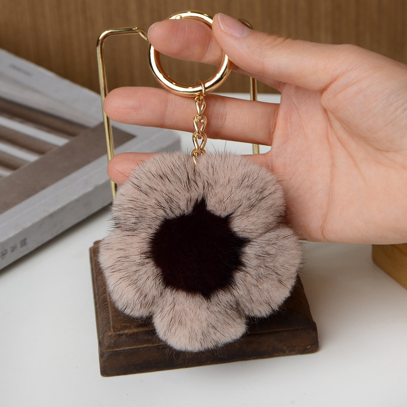 太阳花水貂毛绒包包车钥匙扣挂件