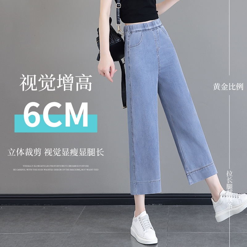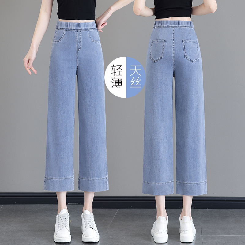 松紧腰天丝牛仔裤女夏季薄款2025年新款小个子八分冰丝直筒烟管裤