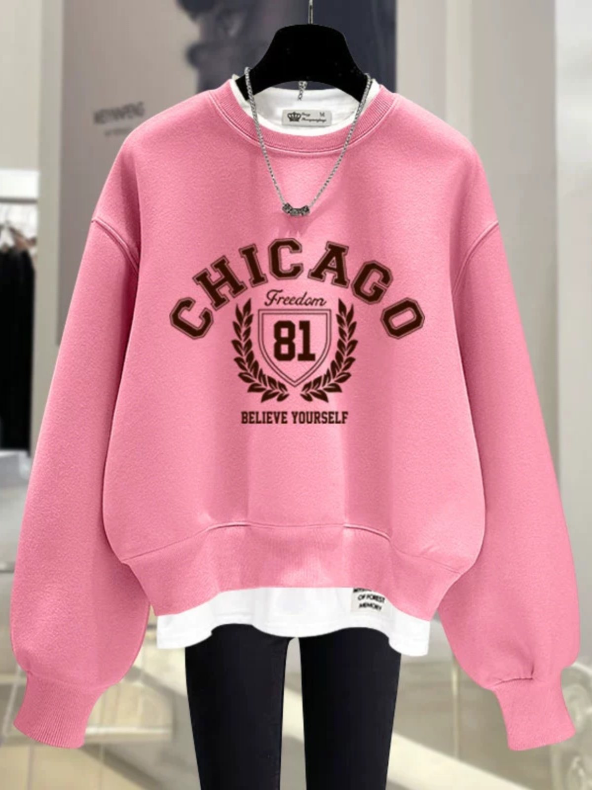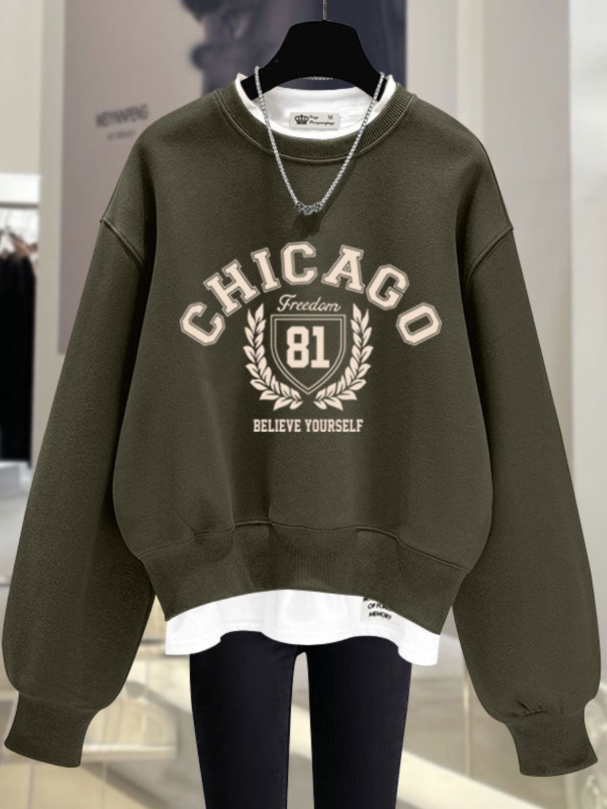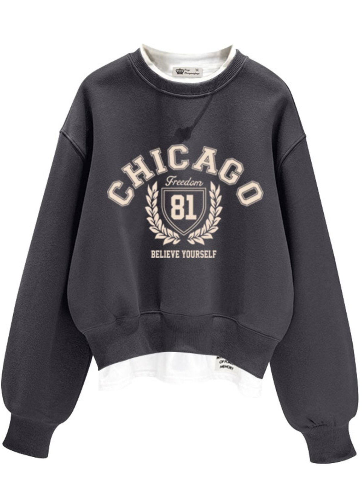 2025春秋冬季新款数字母假两件加绒加厚宽松套头短款圆领卫衣女潮