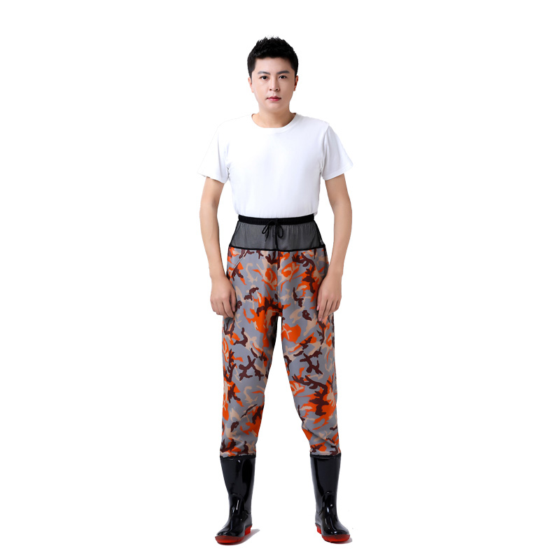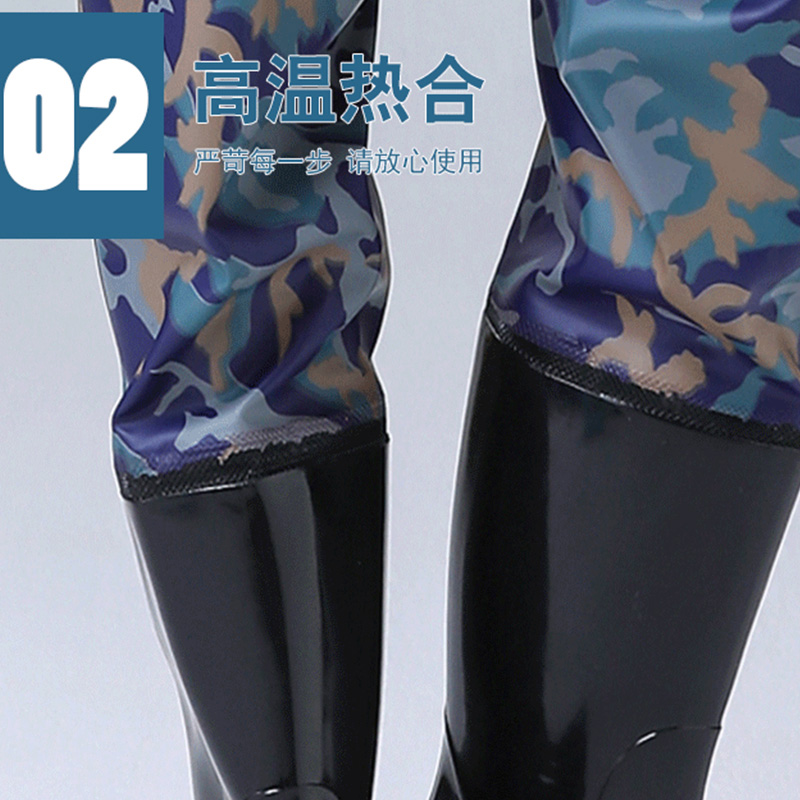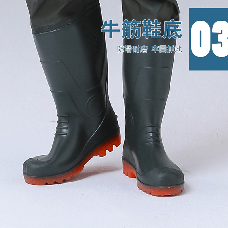 超轻齐腰下水裤耐磨防水裤加厚抓鱼路亚透气半身雨裤连体雨鞋捕鱼