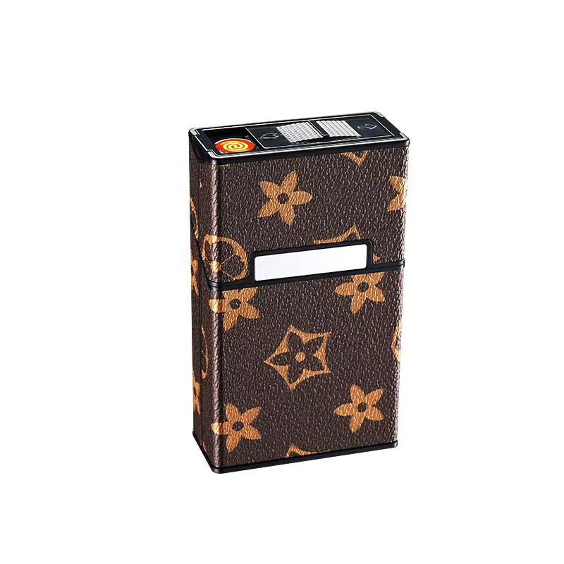 新款20支装皮质烟盒充电打火机一体软硬盒装烟壳抗压防潮便携耐用
