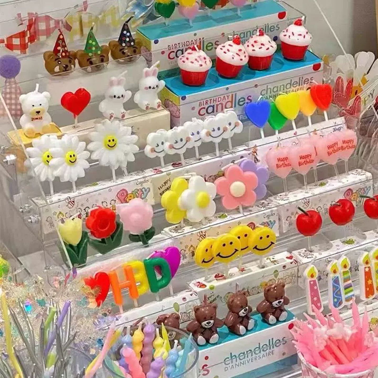 卡通ins风生日蜡烛蛋糕装饰小熊笑脸花朵派对帽爱心儿童生日蜡烛
