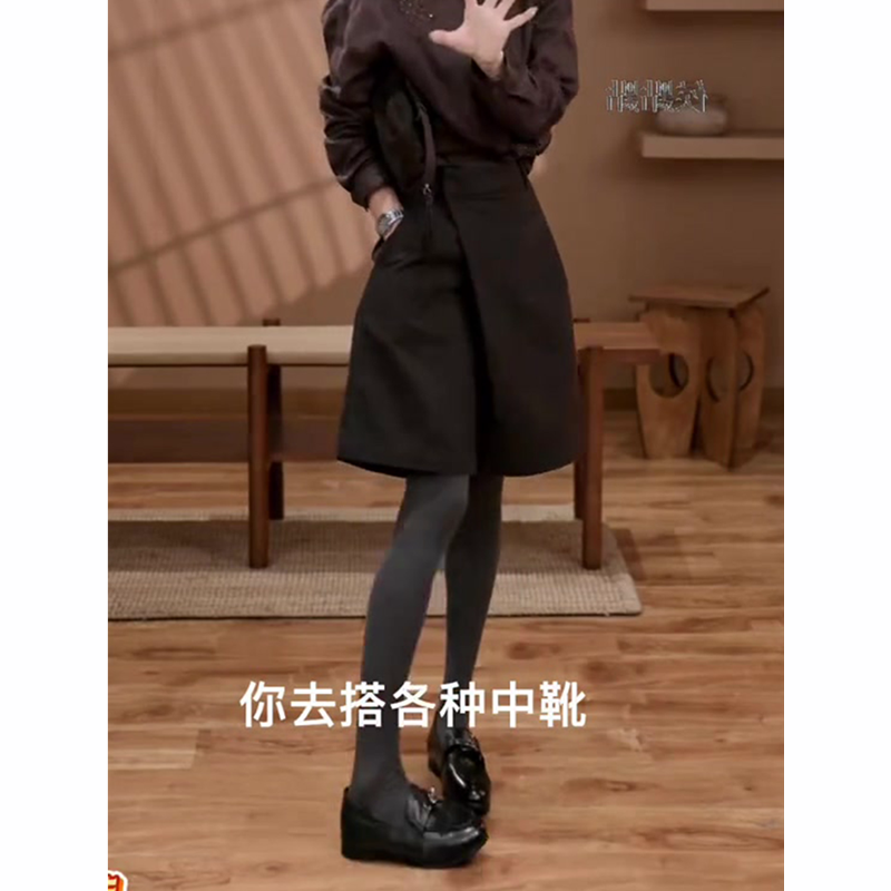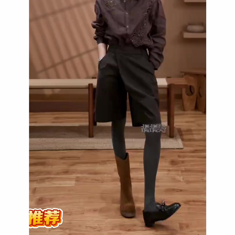 设计感咖色五分裤女秋季流行新款宽松显瘦短裤时髦百搭通勤休闲裤